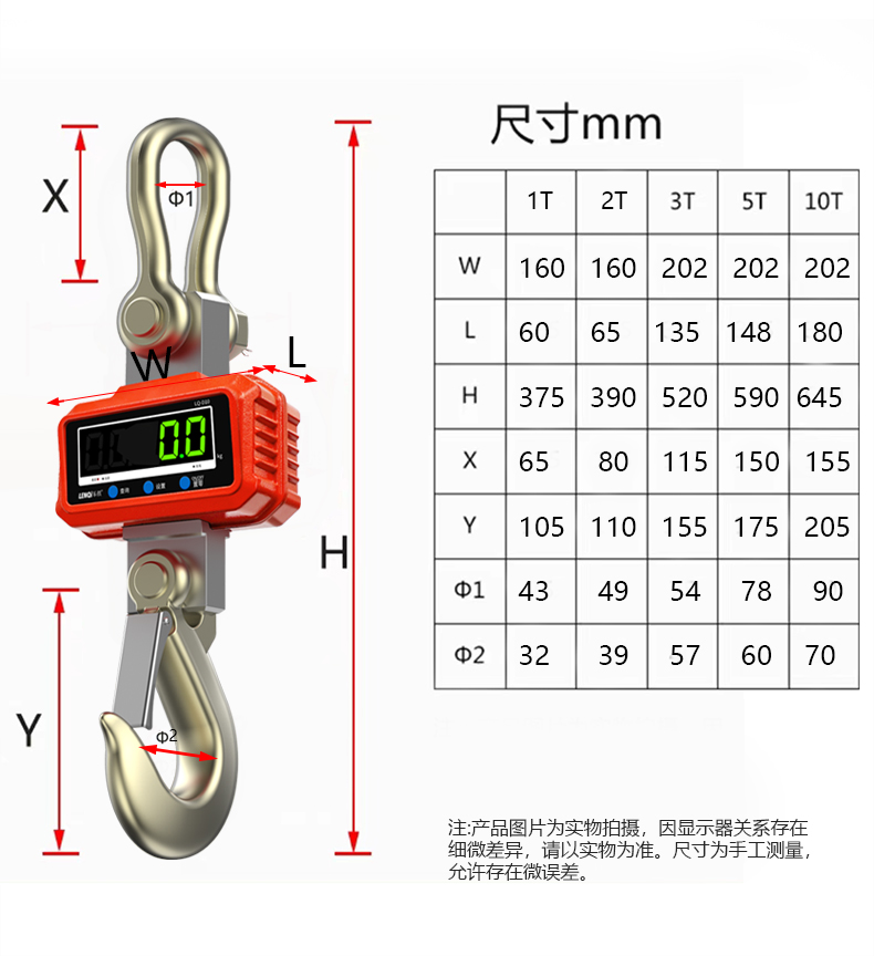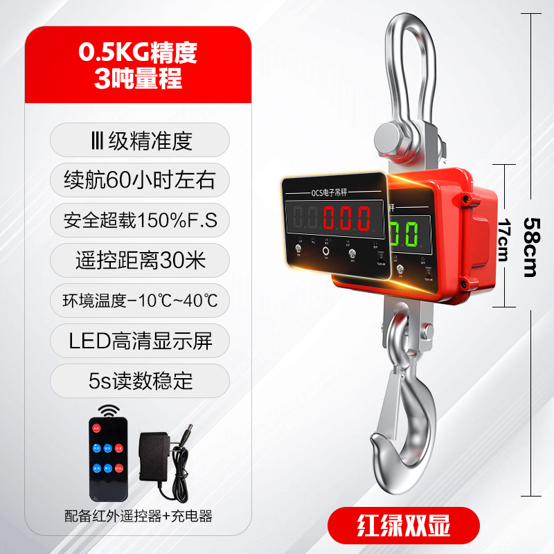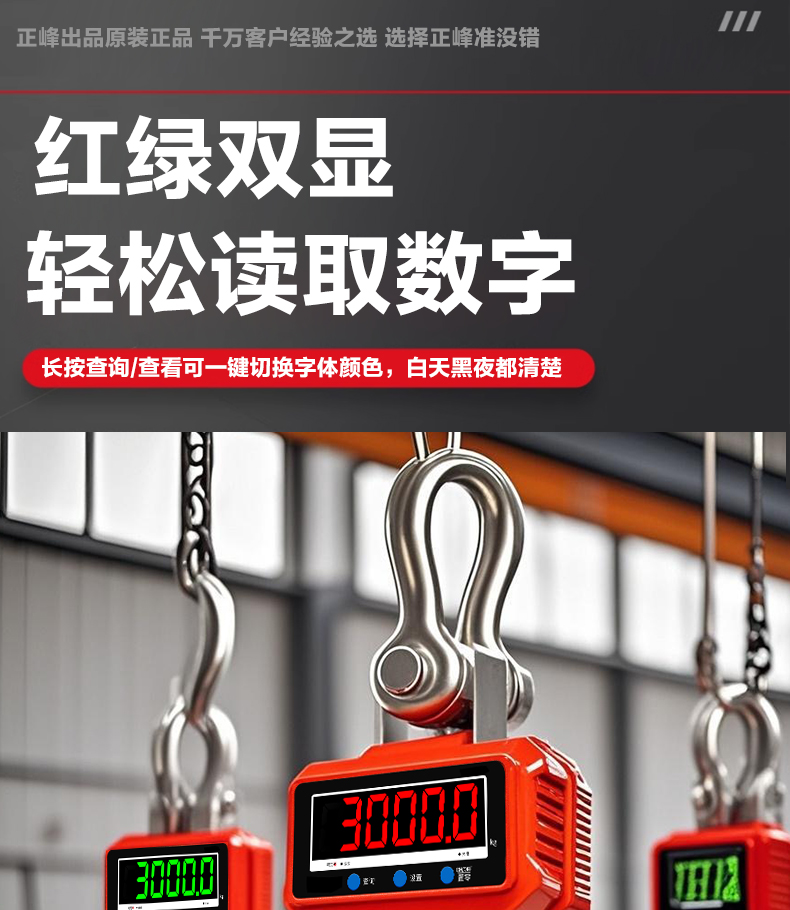 • 3톤 정확도 1kg(방수 크레인 스케일은 완전히 밀봉되고 방수됨) 빨간색과 녹색 문자 간 원클릭 전환