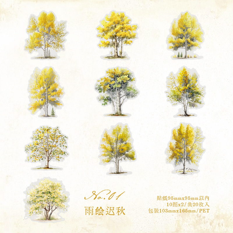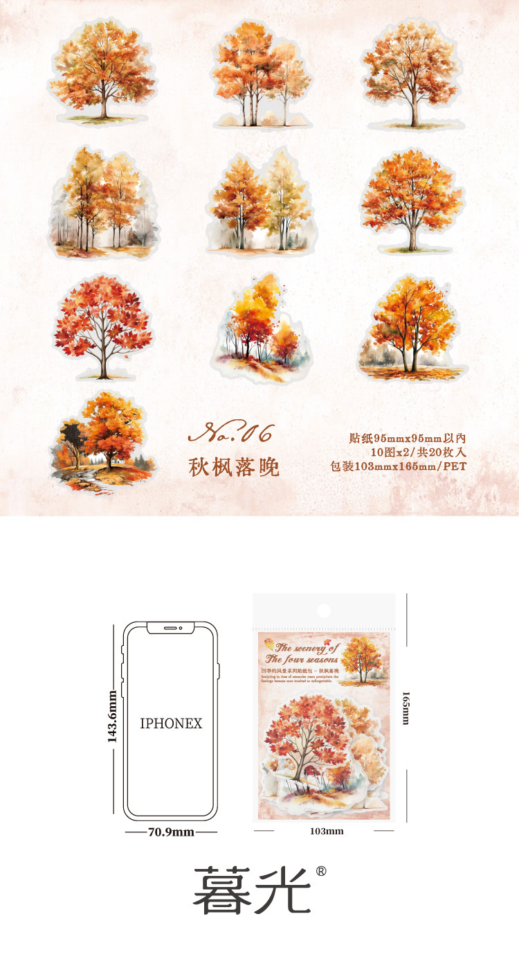 황혼의 사계절 풍경 시리즈 PET 스티커 팩 숲 나무 조경 PET 콜라주 소재 6종