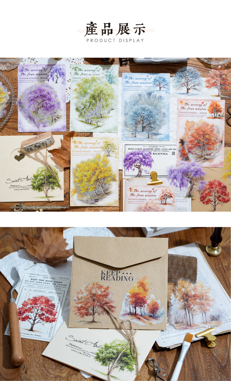 황혼의 사계절 풍경 시리즈 PET 스티커 팩 숲 나무 조경 PET 콜라주 소재 6종스토어 가기
