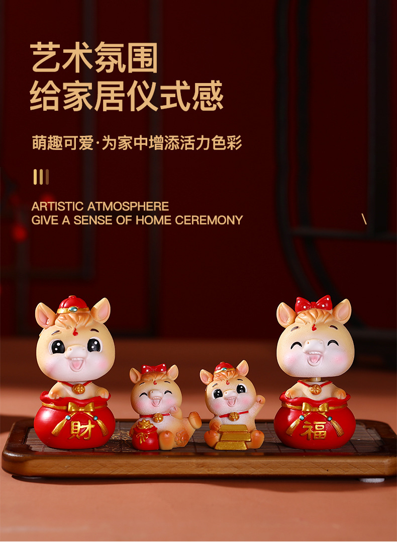 새로운 말의 해 12 조디악 말 작은 장식품 만화 인형 데스크탑 장식 장식품 새해 연례 파티 자동차 장식품