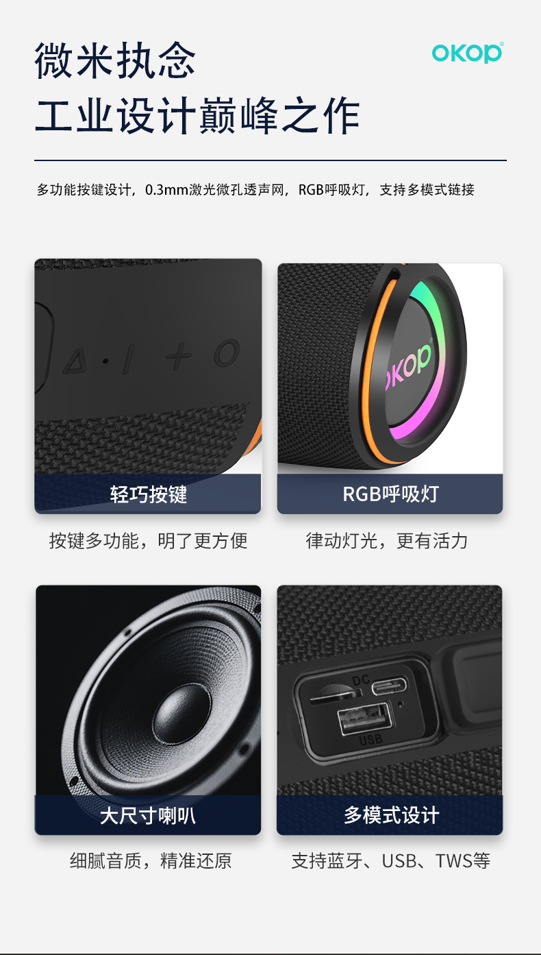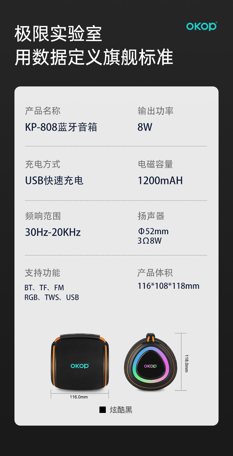 808 신형 RGB 다채로운 조명 블루투스 스피커, 크로스보더 휴대용 클리어 사운드 중저음 강화 스피커스토어 가기