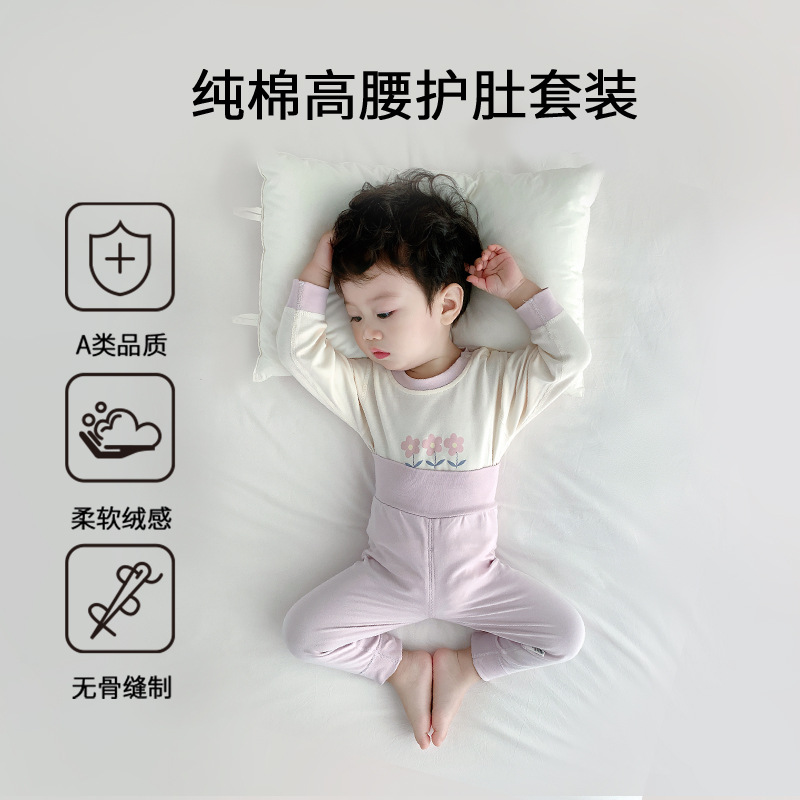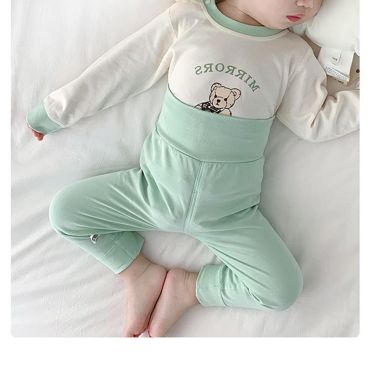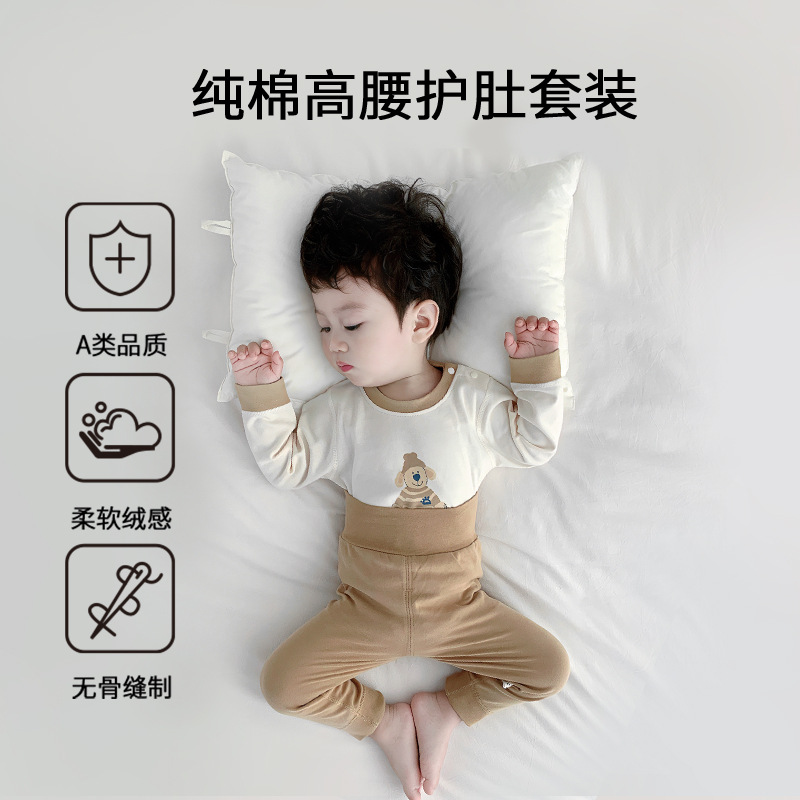 아기 보온 속옷 세트, 가을 옷과 긴 바지, 순면 유아용 하이웨이스트 배 보호복, 아동용 스플릿 베이스 레이어, 봄, 가을