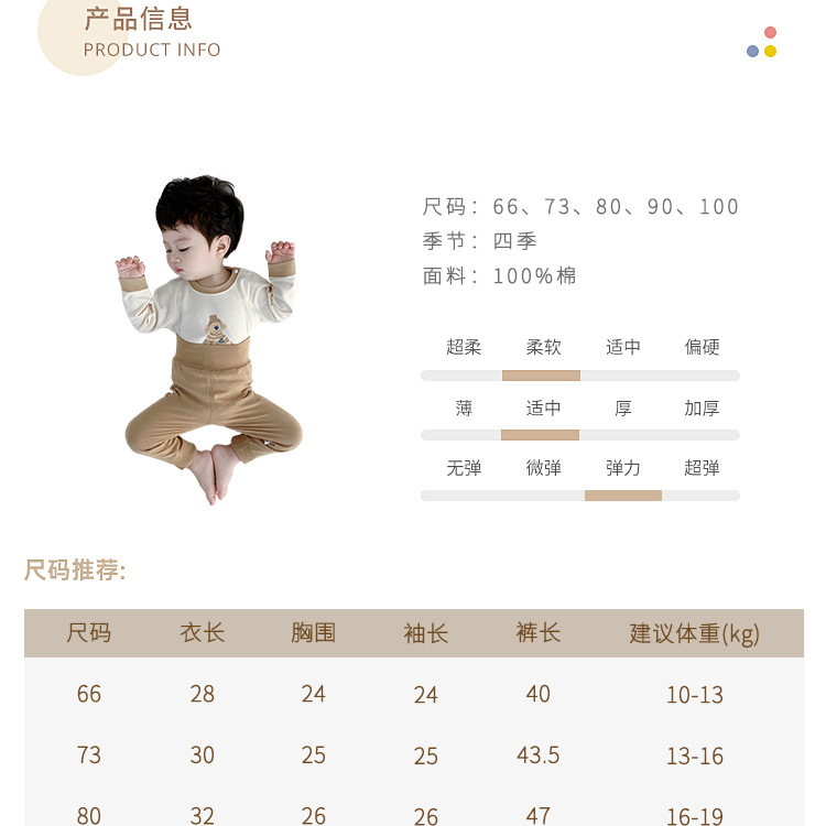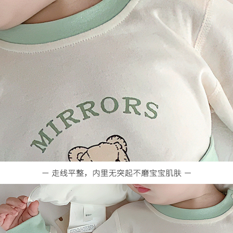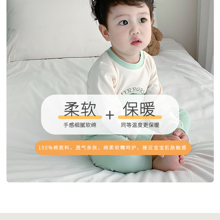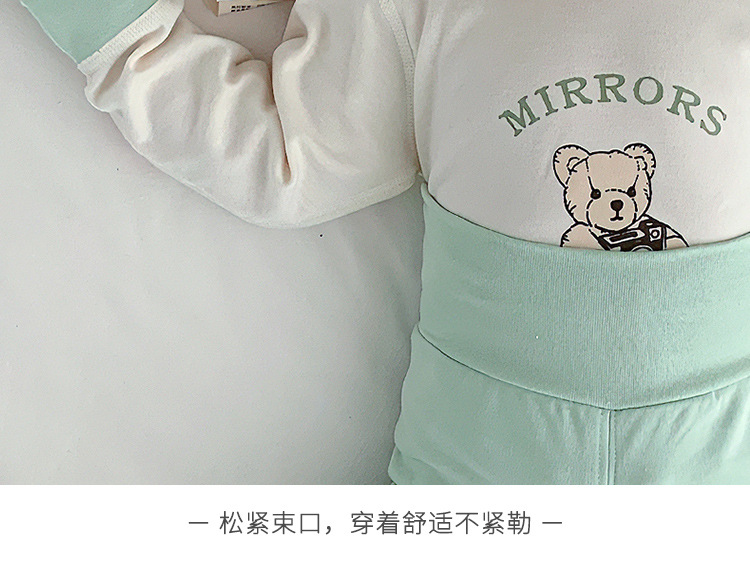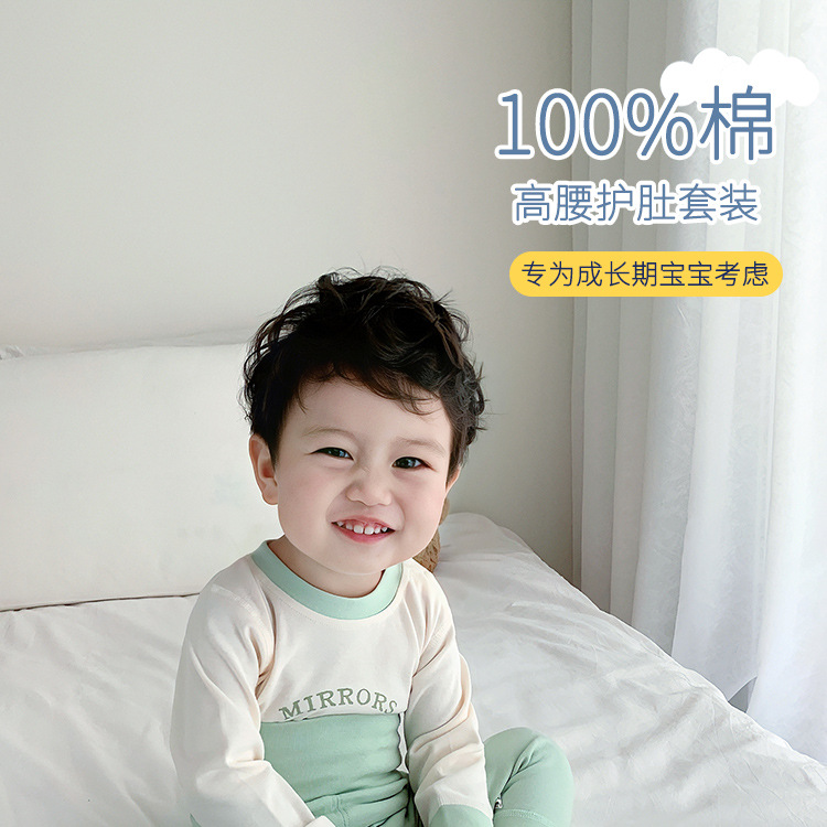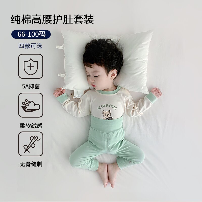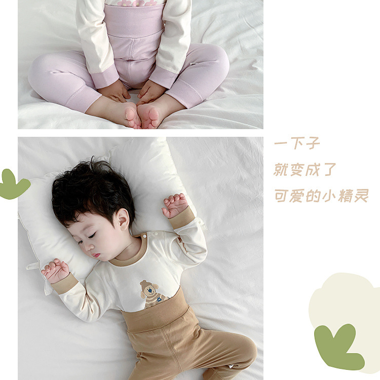 아기 보온 속옷 세트, 가을 옷과 긴 바지, 순면 유아용 하이웨이스트 배 보호복, 아동용 스플릿 베이스 레이어, 봄, 가을스토어 가기
