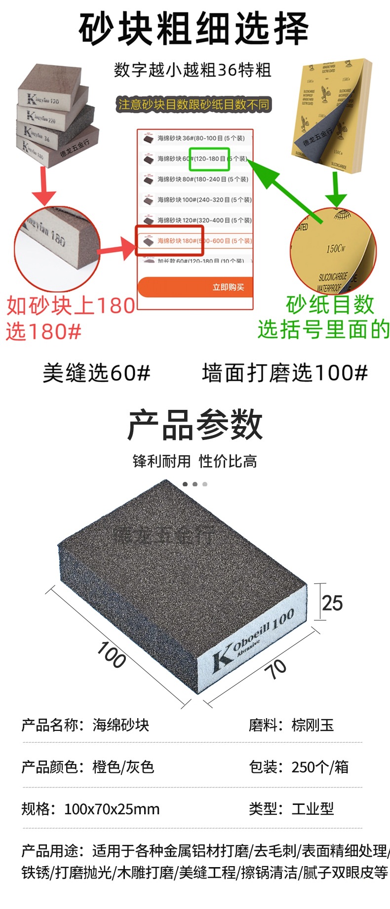 수입 모래 스폰지, 모래 블록, 사포, 페인트 연마, 목공 금속 연마, 내마모성 사각형 스폰지 10팩 Junxia스토어 가기