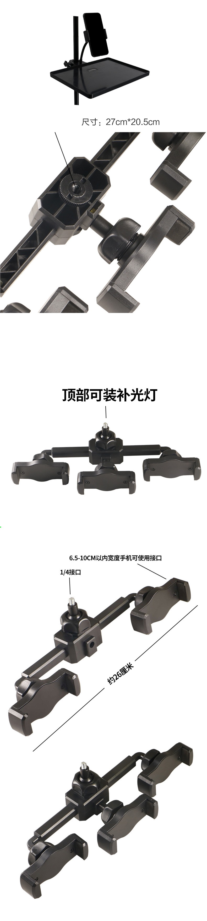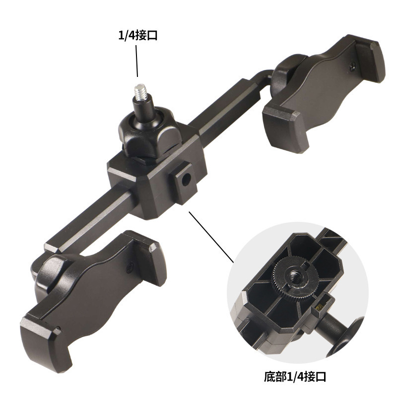 휴대폰 라이브 방송 스탠드 듀얼 카메라 크로스바 클립 다기능 범용 셀카 사진 라이브 방송 스탠드 카메라 위치