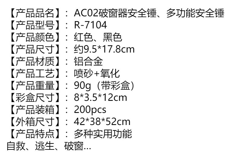 자동차 미니 안전 망치, 새로운 자동차 창문 파괴 도구, 다기능 충격 핀 탈출 장치, 자동차 1초 인명 구조 장치