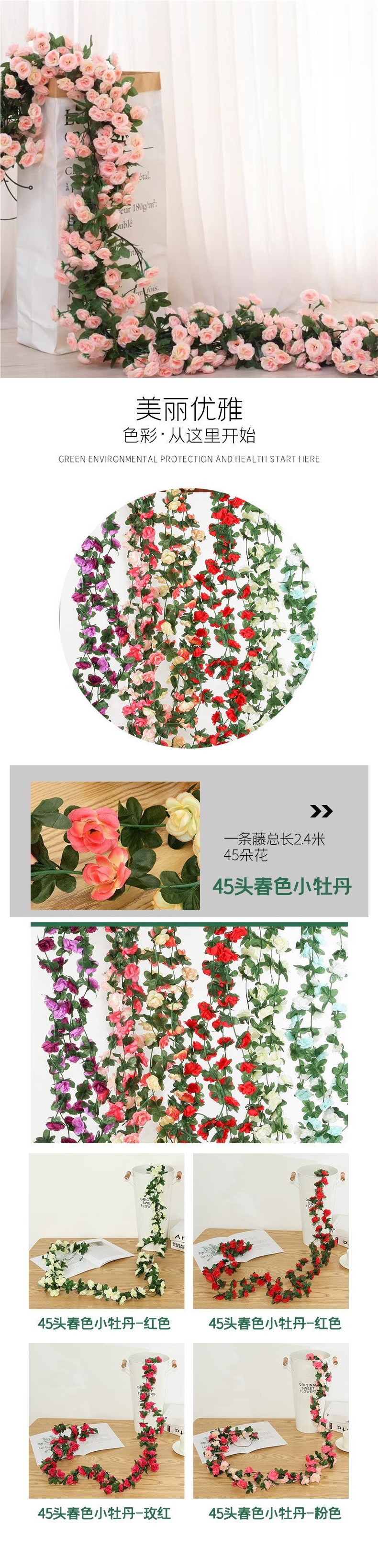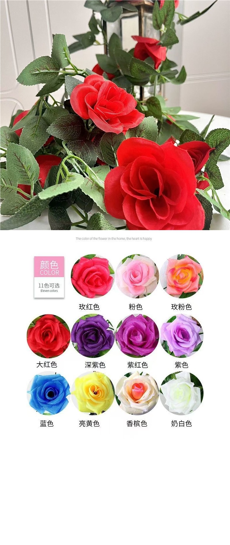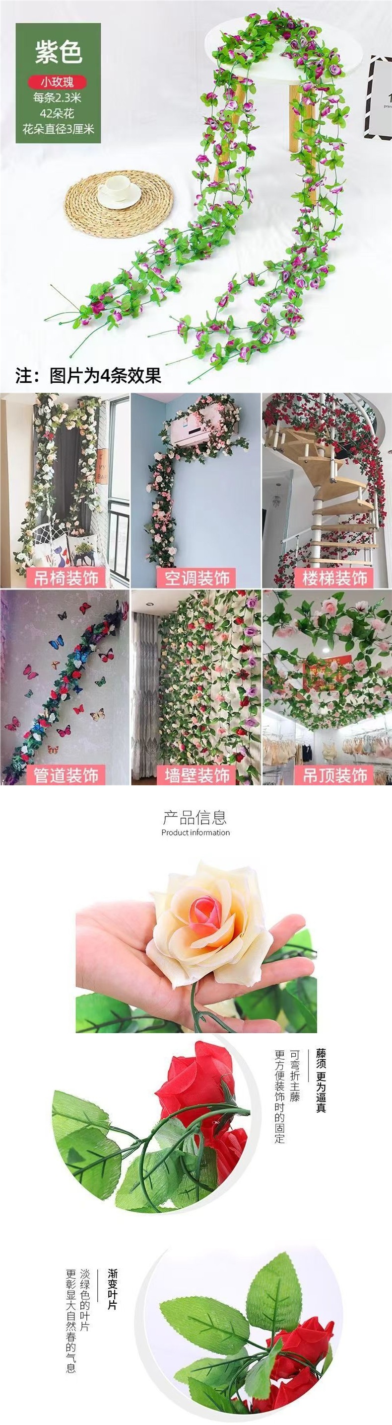 시뮬레이션 장미 꽃 덩굴, 가짜 꽃 덩굴, 거실 에어컨 덕트 차폐, 장식 천장 덩굴, 플라스틱 식물 포장