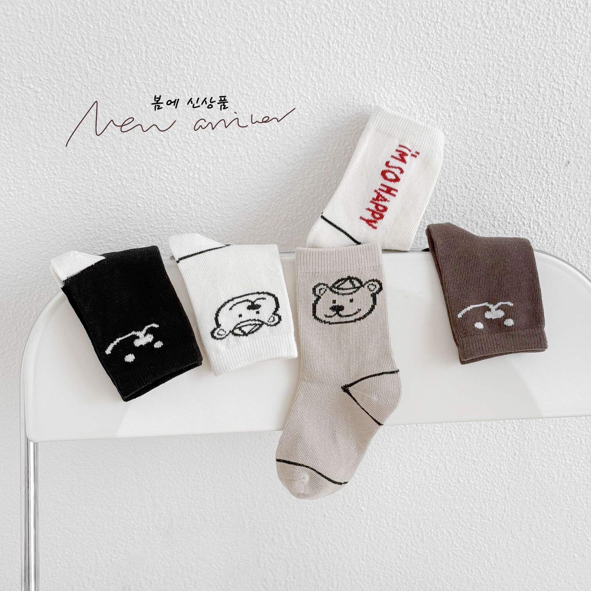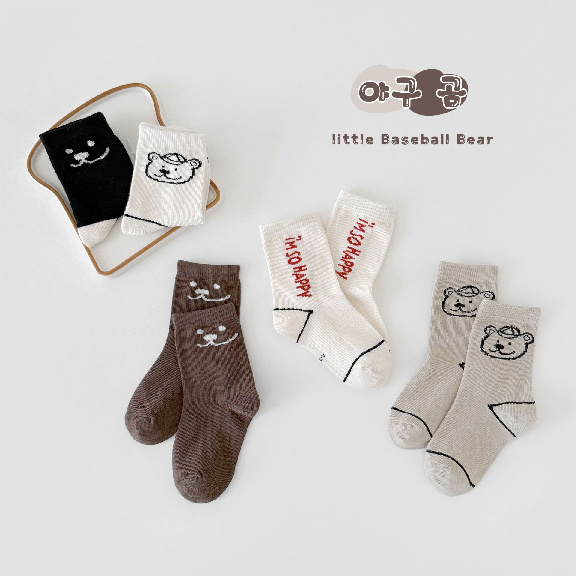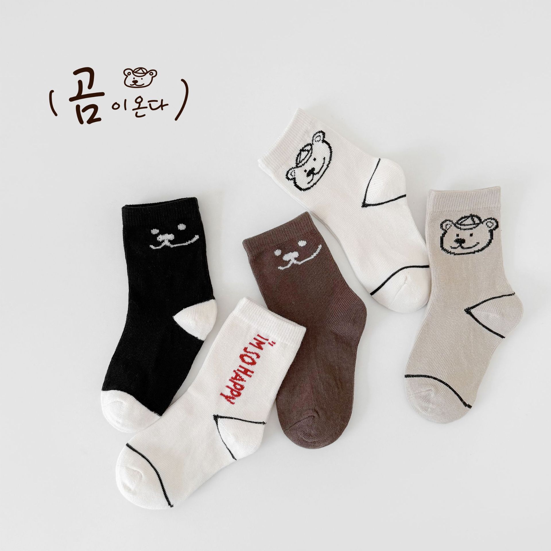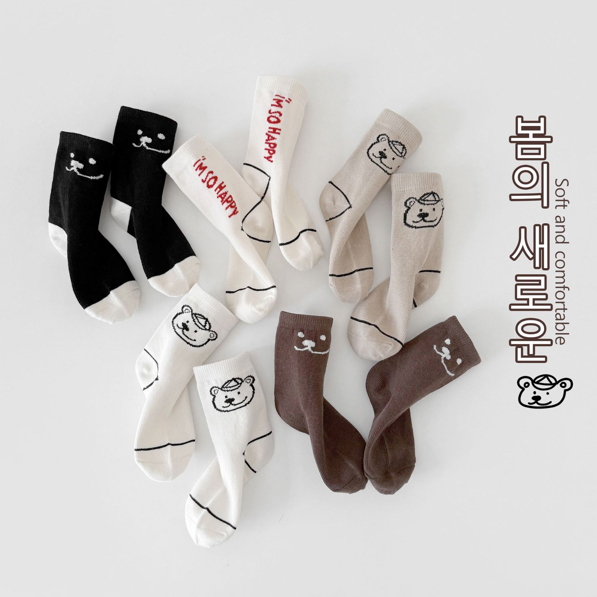 어린이 가을, 겨울 양말 한국 만화 곰 소년과 소녀 중간 튜브 양말 귀여운 ins 유행 학생면 양말 Sun Miss