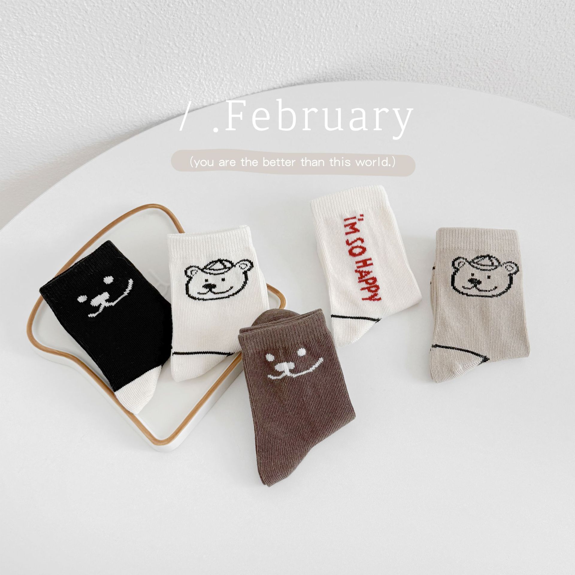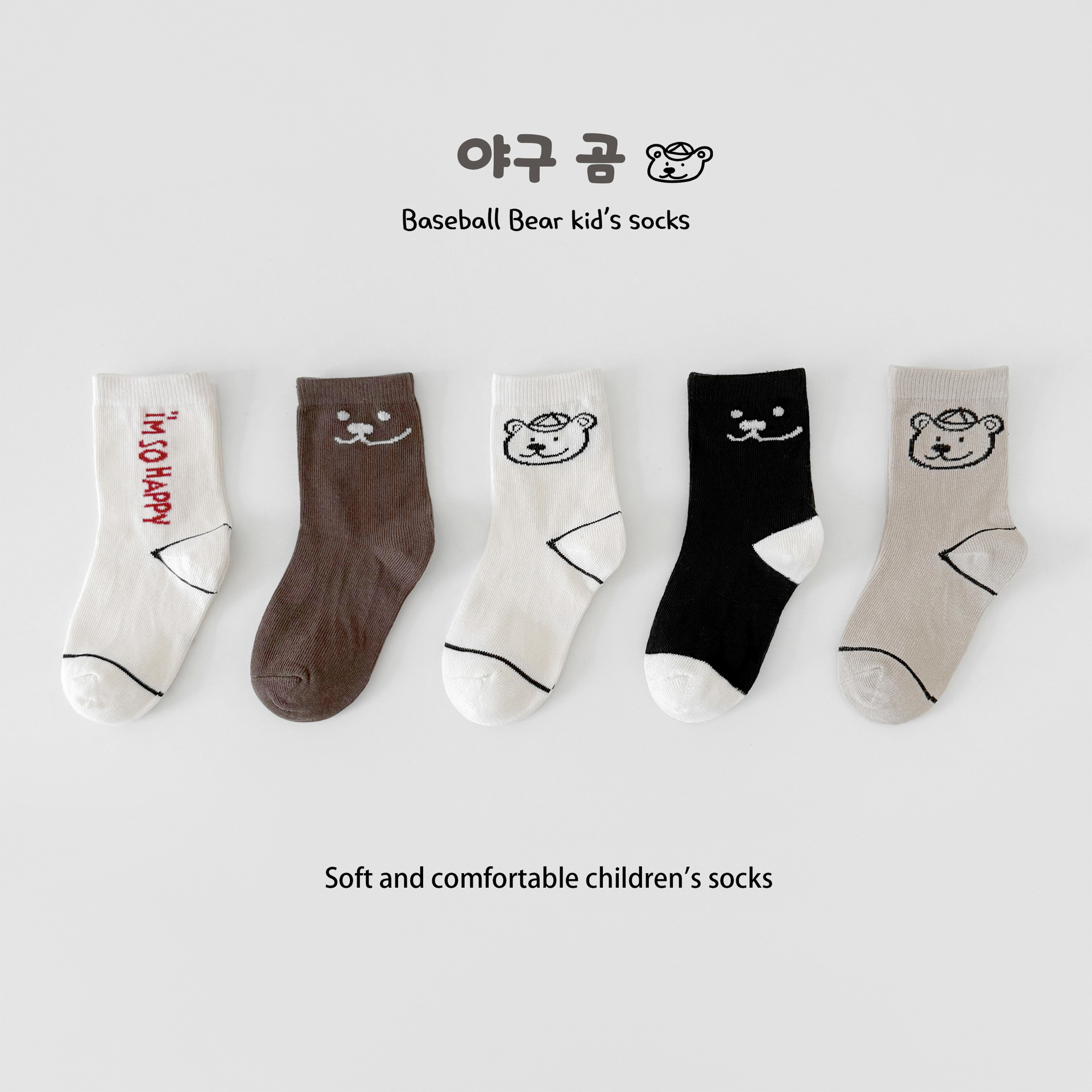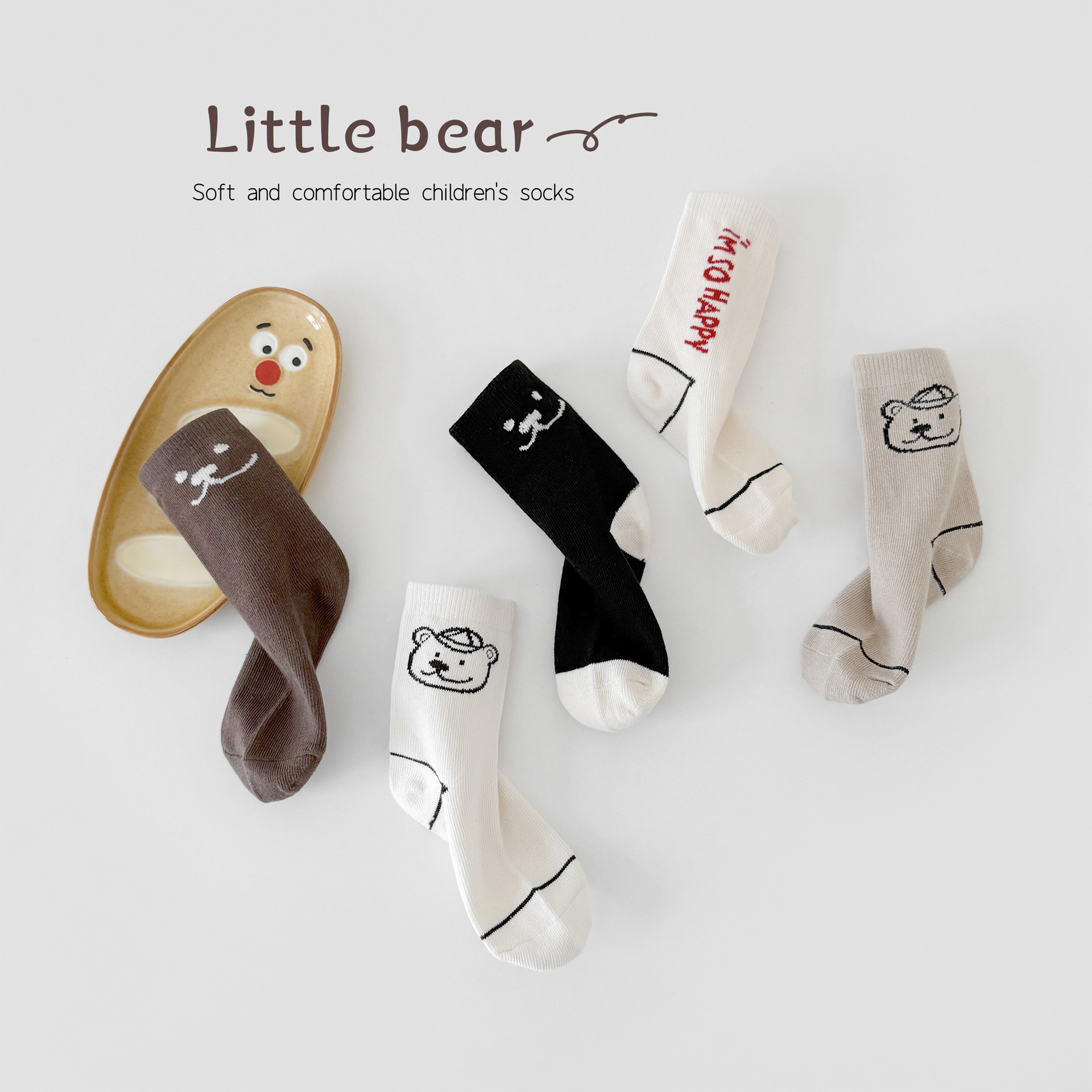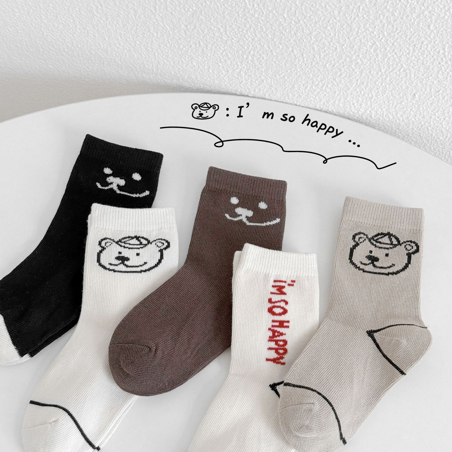 어린이 가을, 겨울 양말 한국 만화 곰 소년과 소녀 중간 튜브 양말 귀여운 ins 유행 학생면 양말 Sun Miss