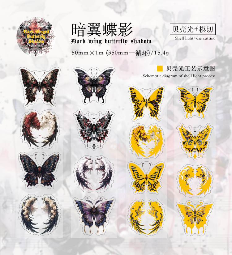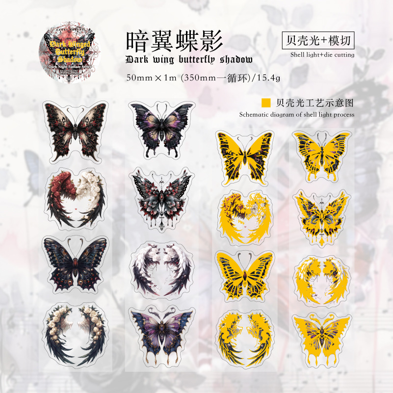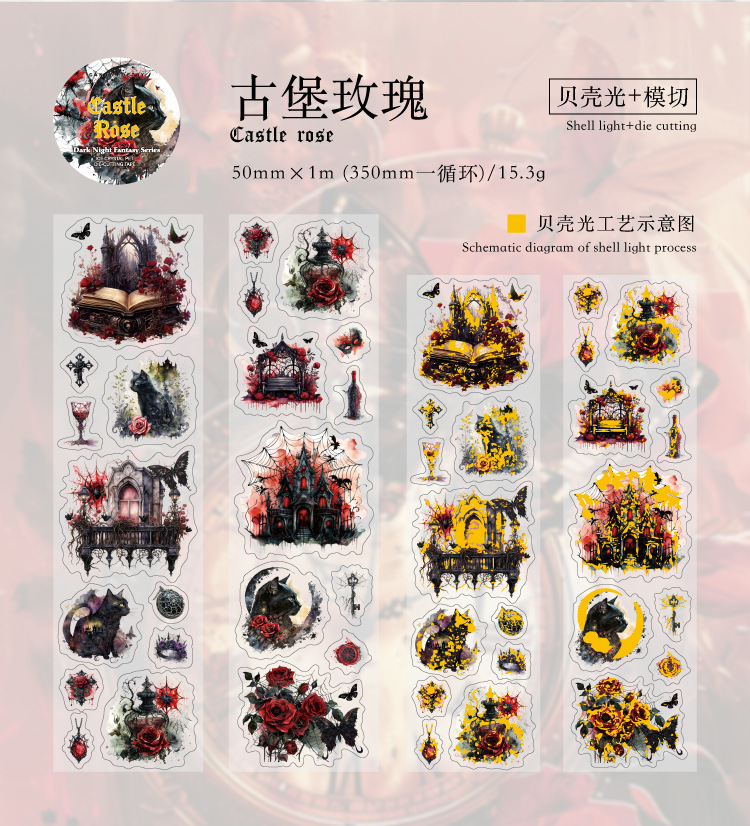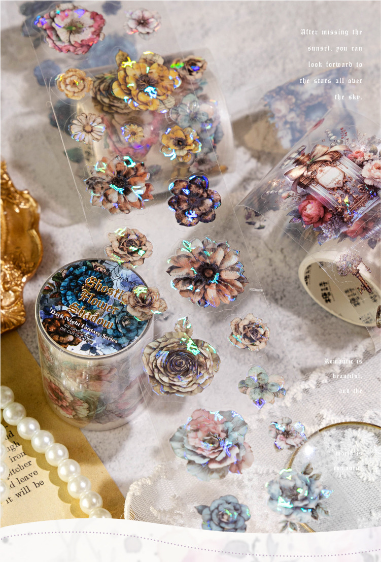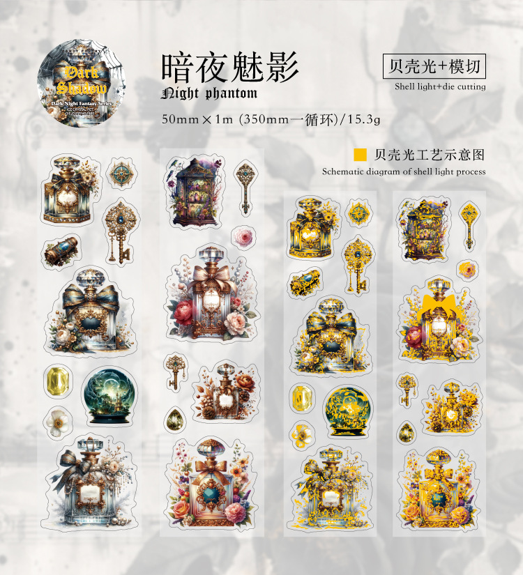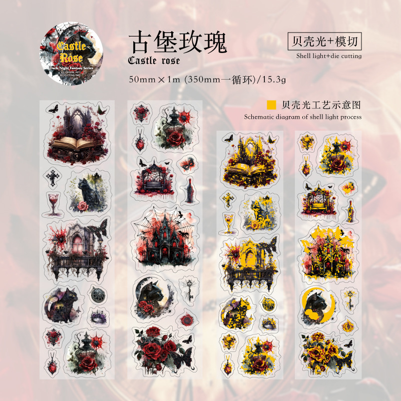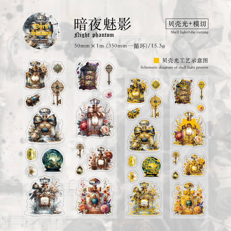 Sugar Poetry Dark Night Fantasy 시리즈 아이스 크리스탈 PET 다이컷 테이프 4개 쉘 라이트 복고풍 유럽 테마 소재스토어 가기