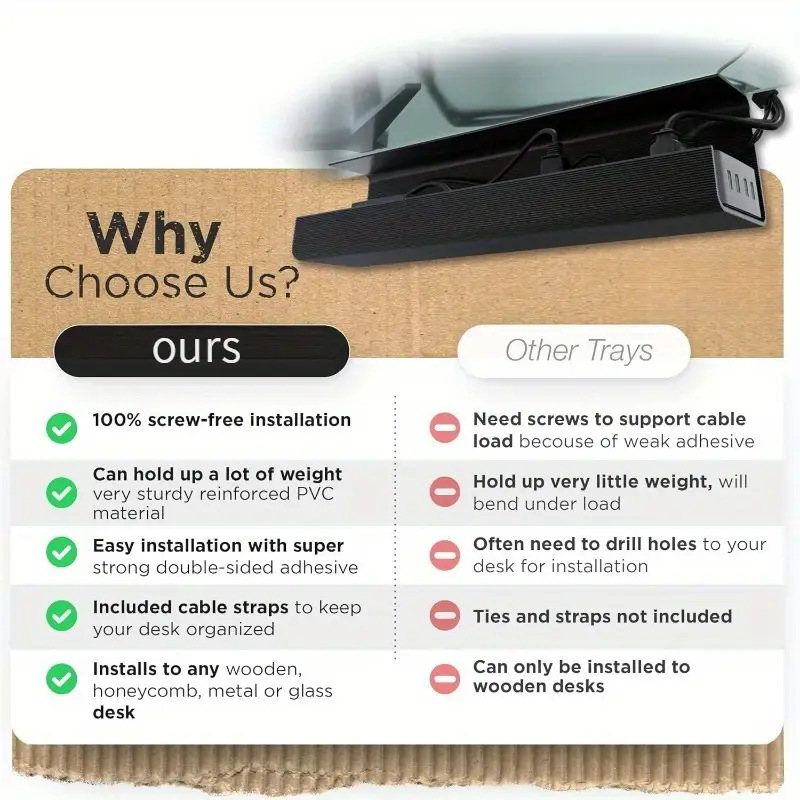책상 아래 케이블 관리 랙, 전선 보관 슬롯, 컴퓨터 책상 아래 플러그인 스트립 고정 케이블 정리함, 펀치 없음스토어 가기