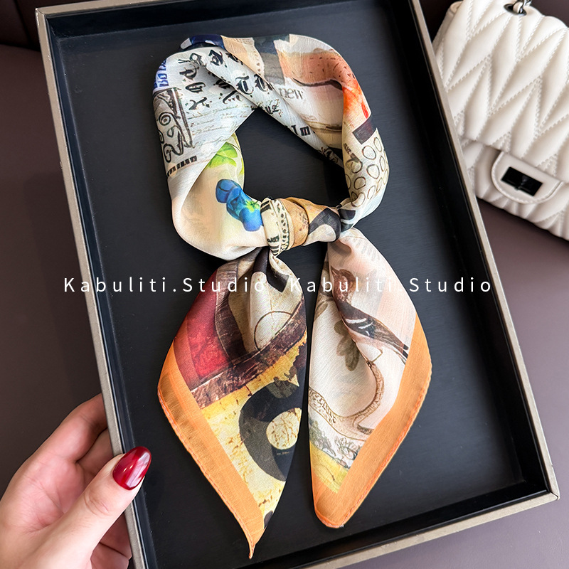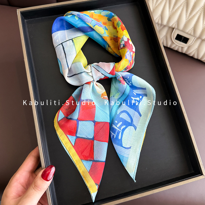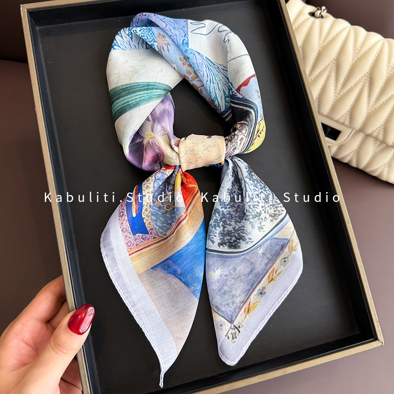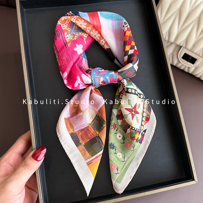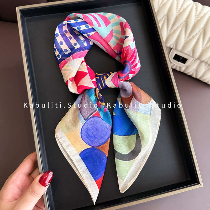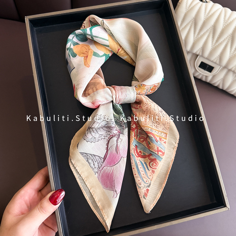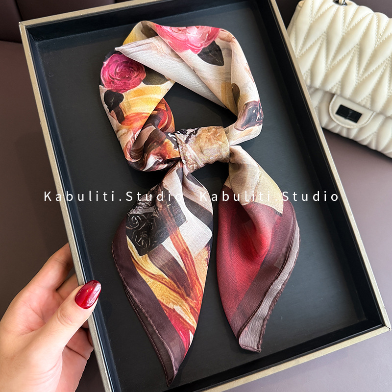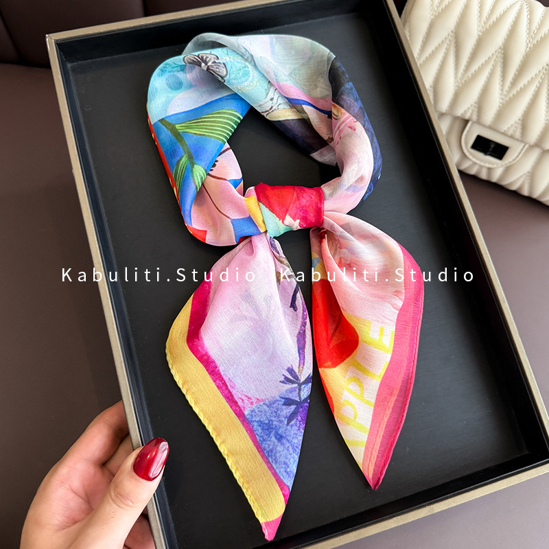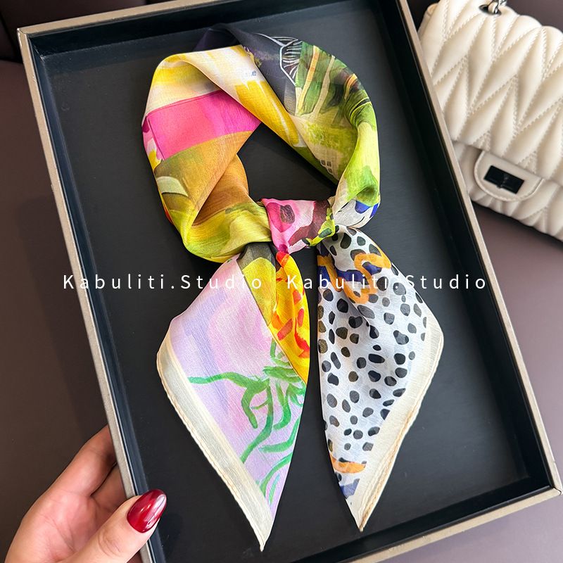 셔츠와 매치하는 여성용 작은 사각 스카프, 전문적인 목 보호대, 목 자외선 차단제, 목 스카프, 헤어 스카프, 얇은 거즈 스카프스토어 가기