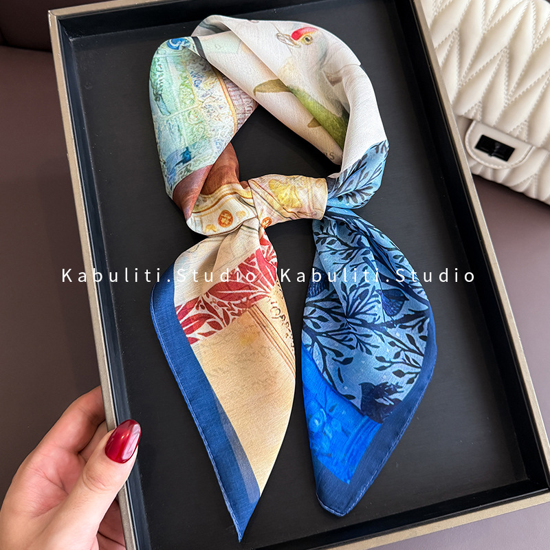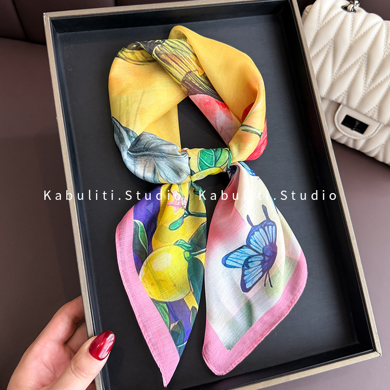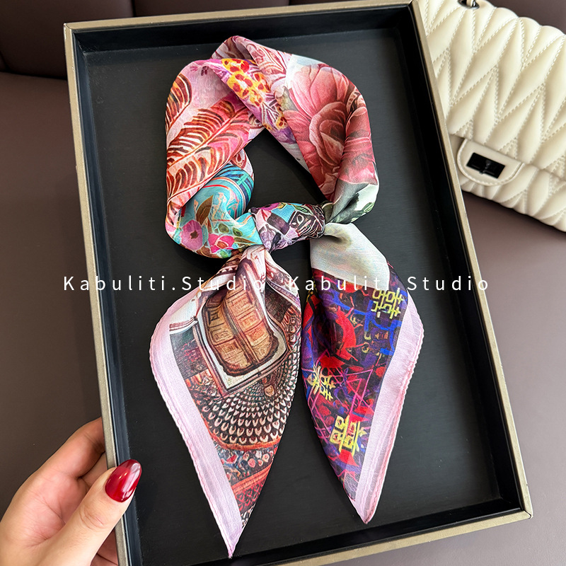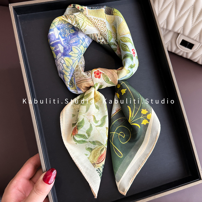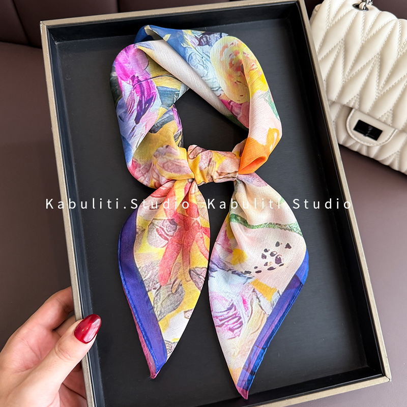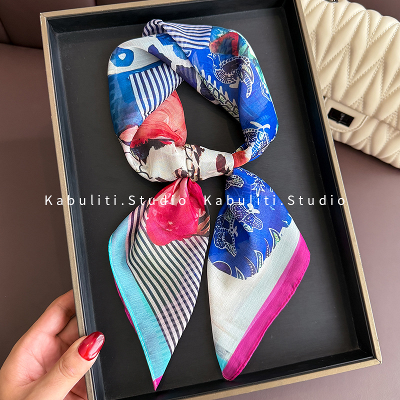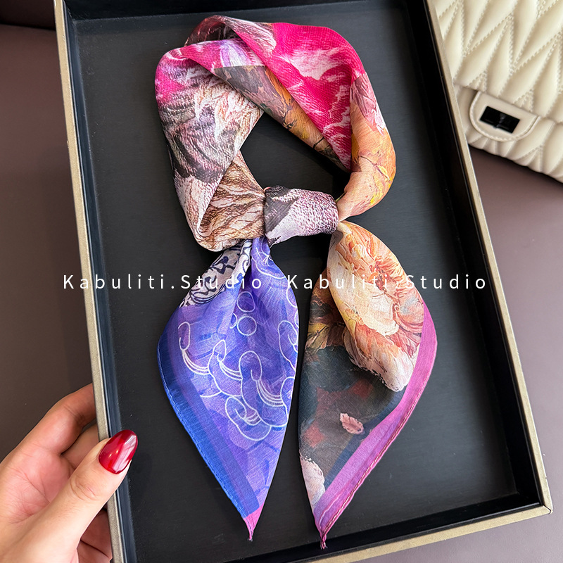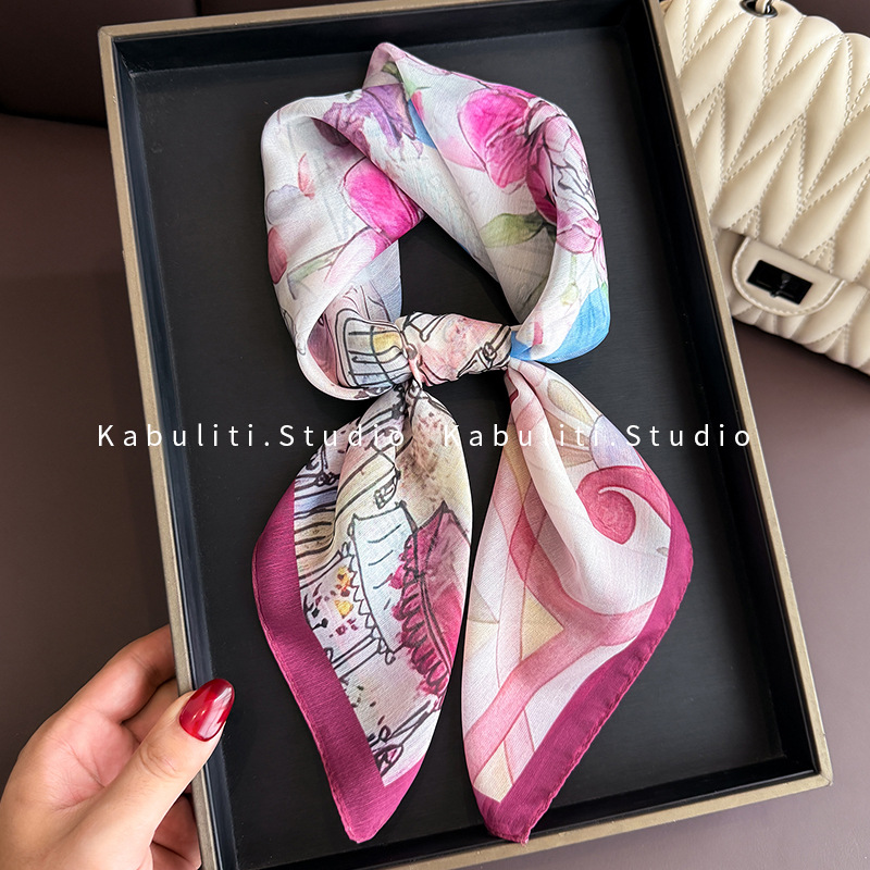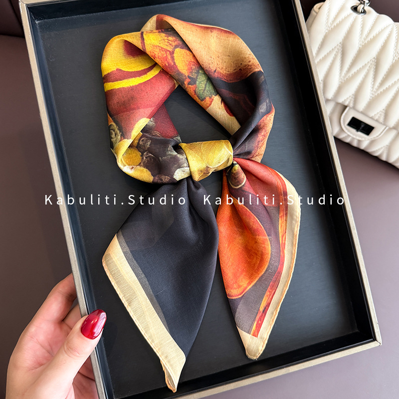 셔츠와 매치하는 여성용 작은 사각 스카프, 전문적인 목 보호대, 목 자외선 차단제, 목 스카프, 헤어 스카프, 얇은 거즈 스카프스토어 가기