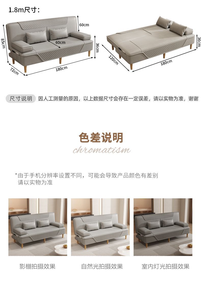 게으른 사람들을 위한 새로운 스타일의 접이식, 탈부착 및 세탁 가능한 소파 베드, 이중 목적 거실, 소형 아파트, 간단한 임대 주택, 북유럽 가죽 소파