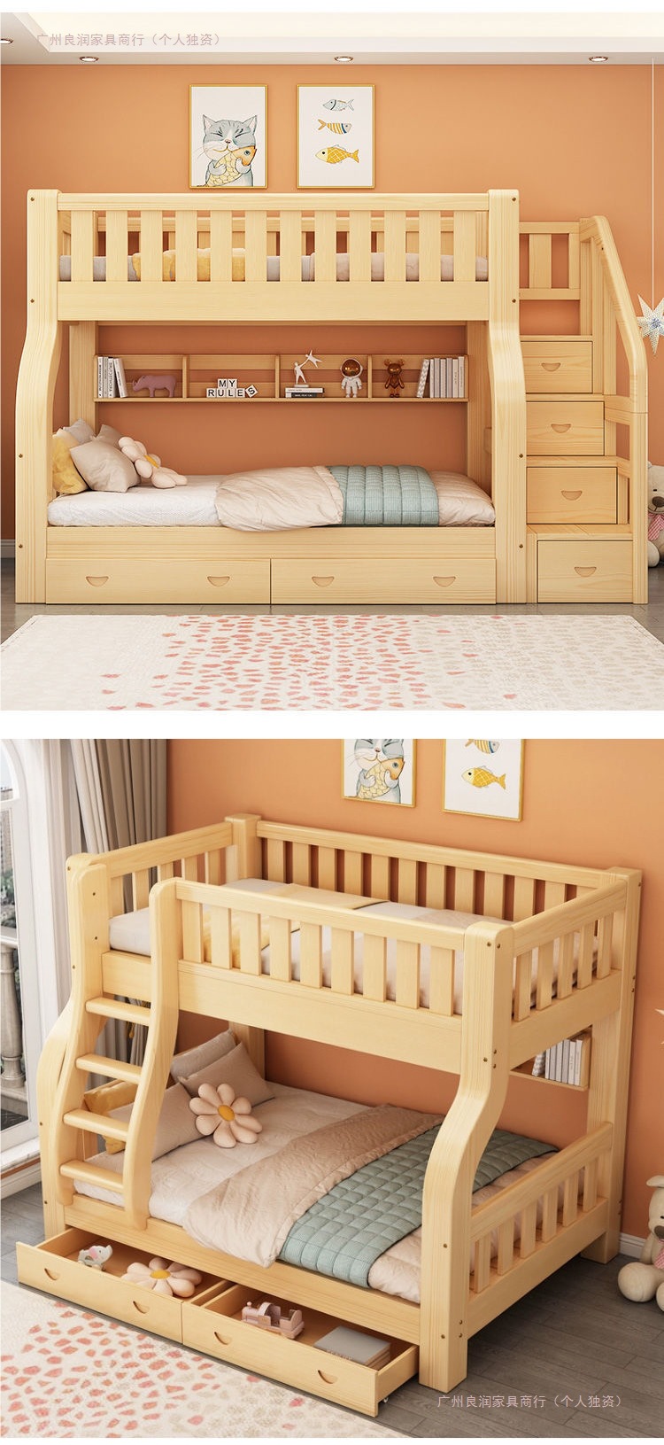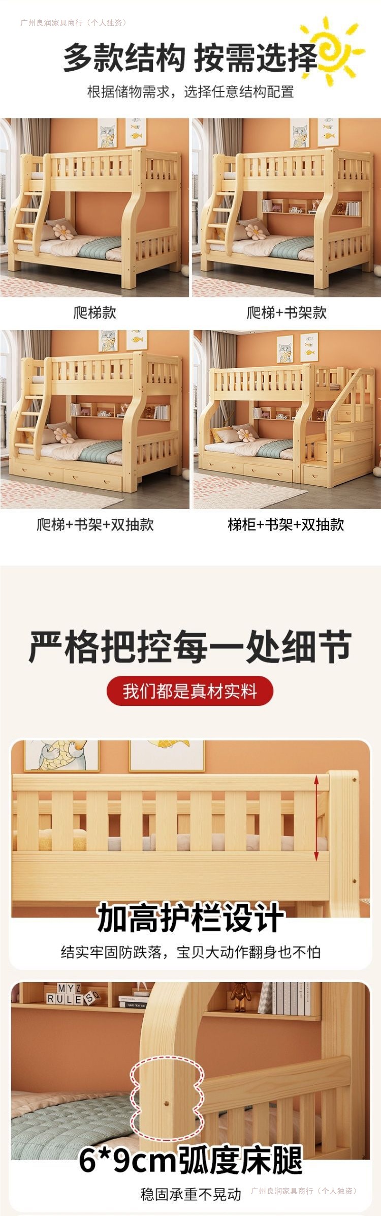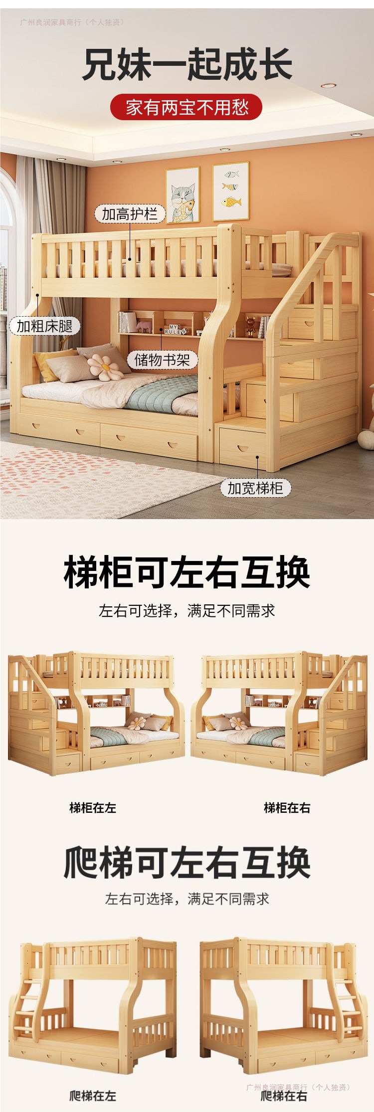이층침대, 이층침대, 2층 원목 하이앤로우 침대, 성인 및 어린이 이층침대, 성인 기숙사 이층침대, 원목 침대