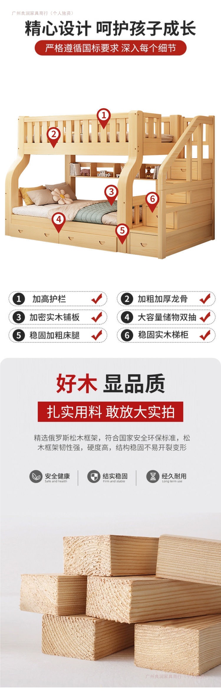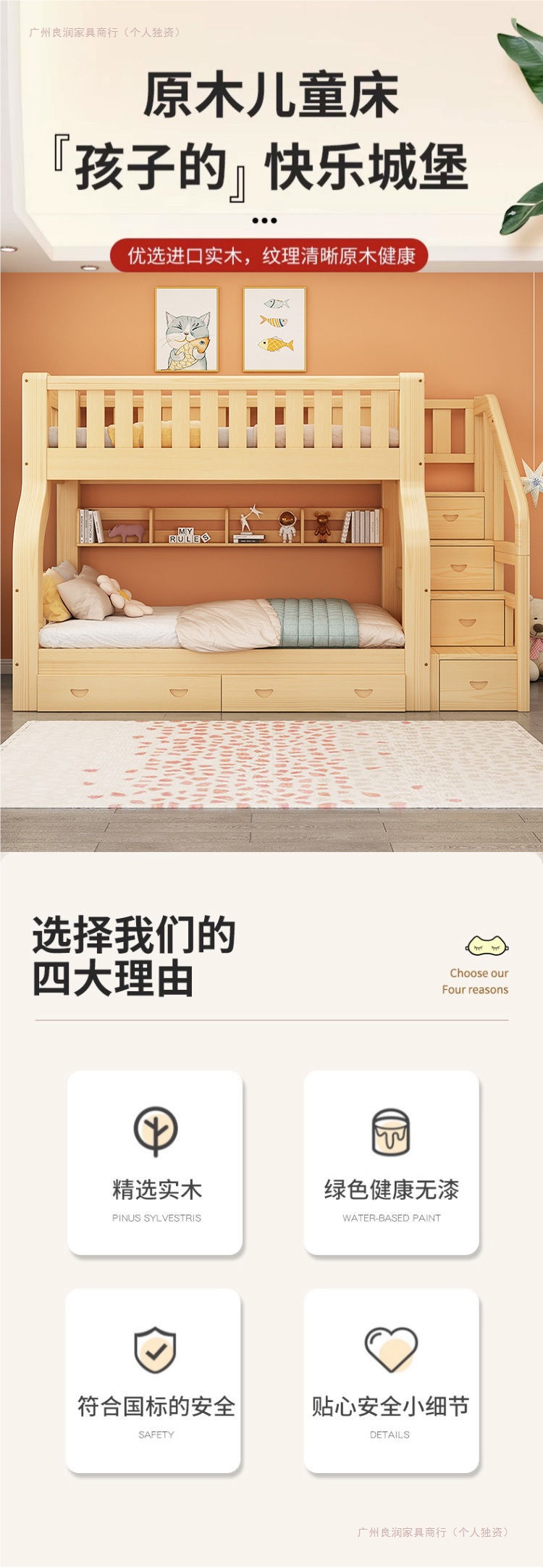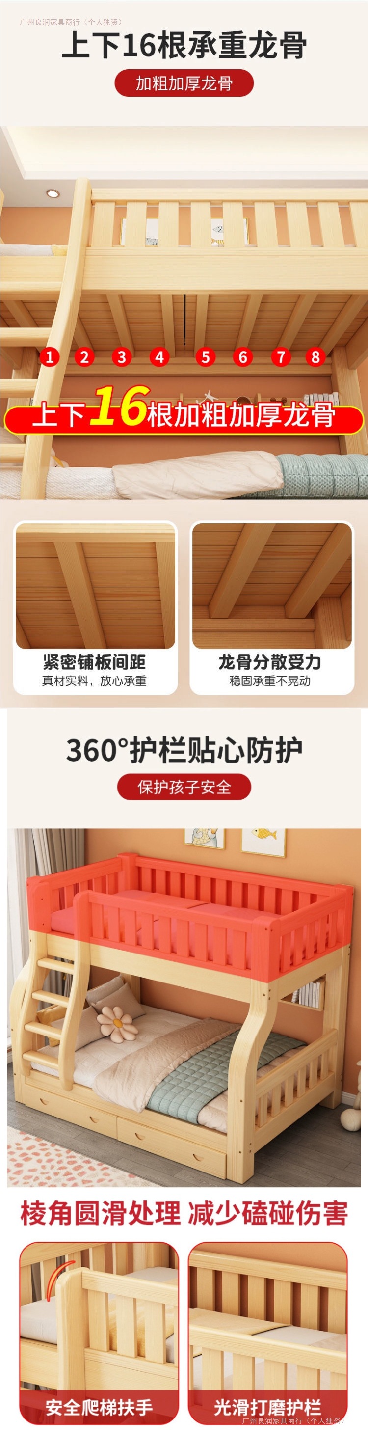 이층침대, 이층침대, 2층 원목 하이앤로우 침대, 성인 및 어린이 이층침대, 성인 기숙사 이층침대, 원목 침대