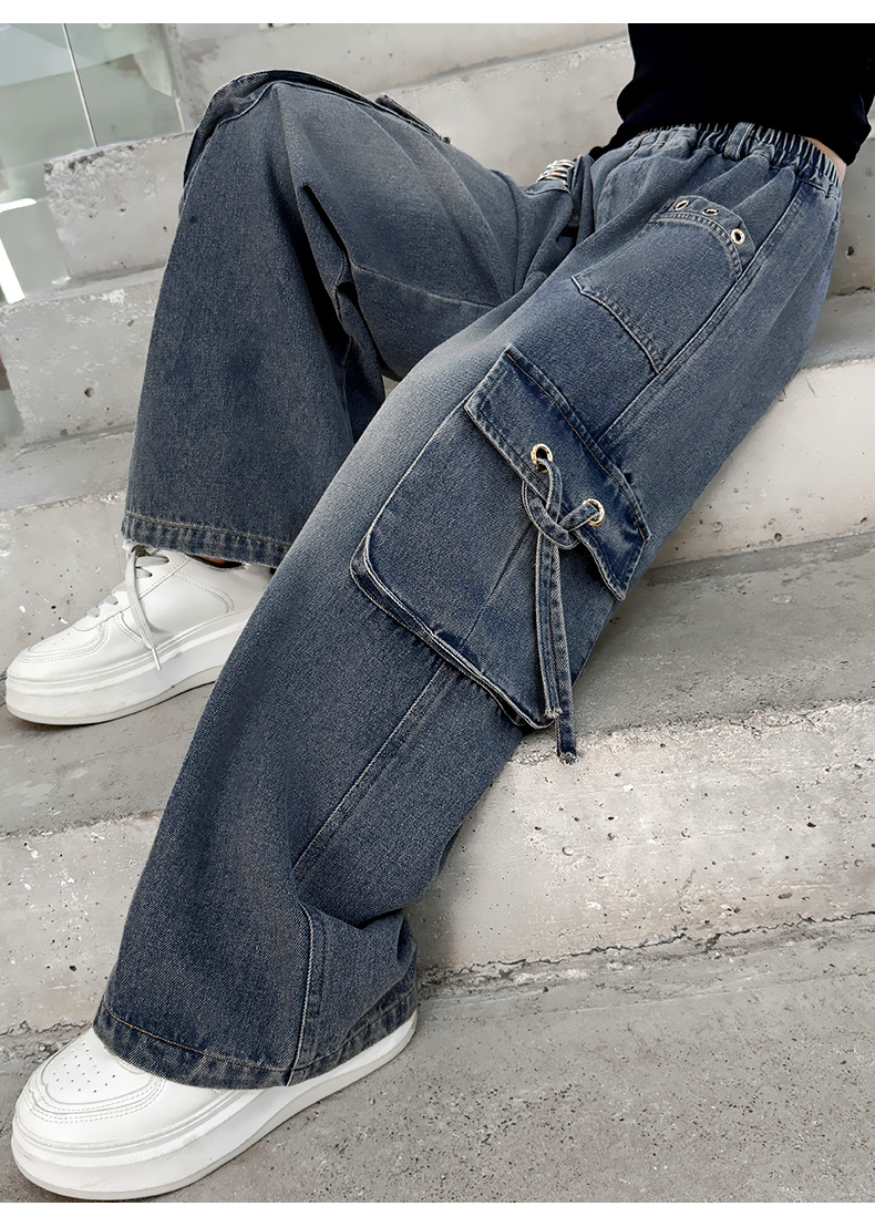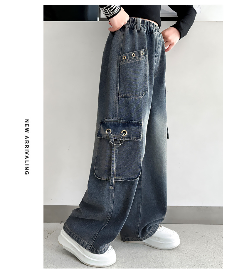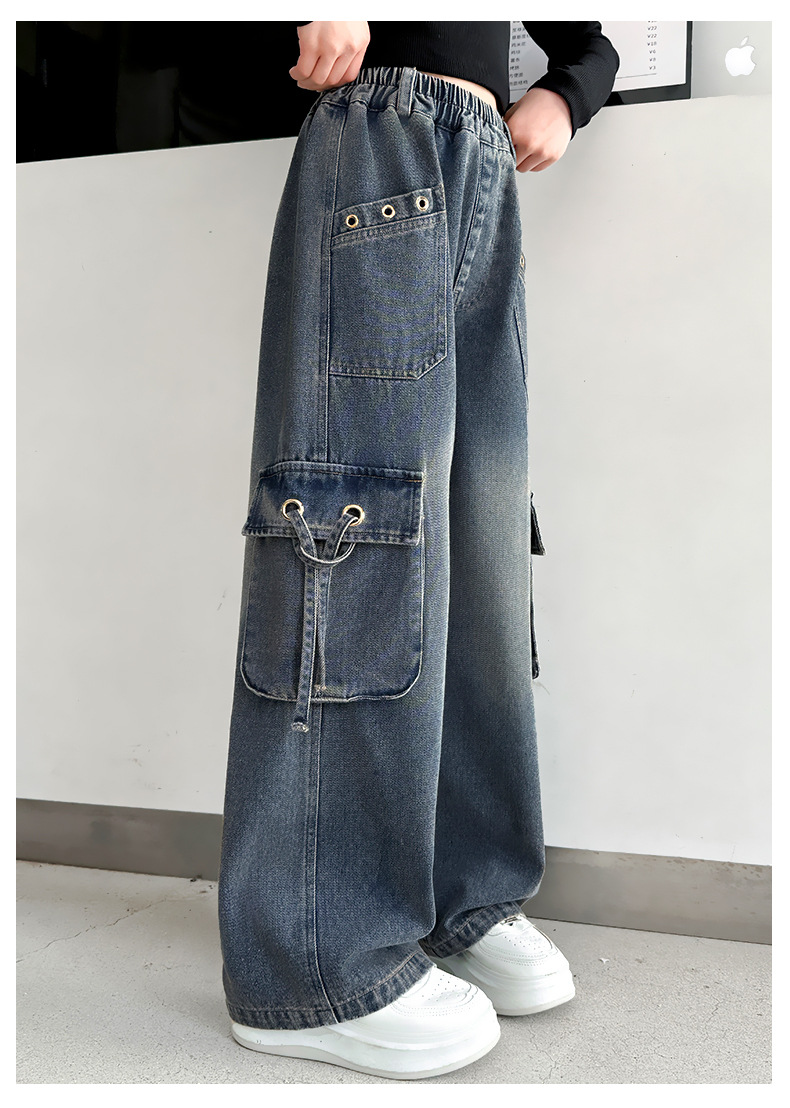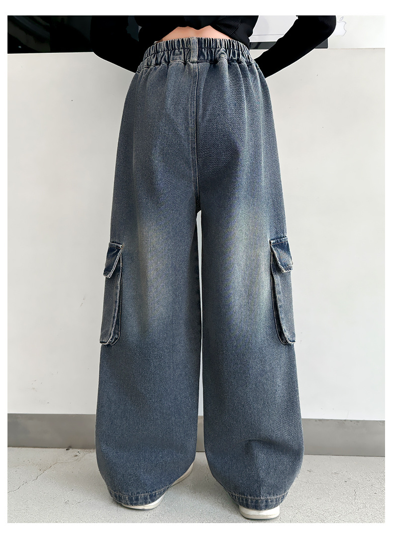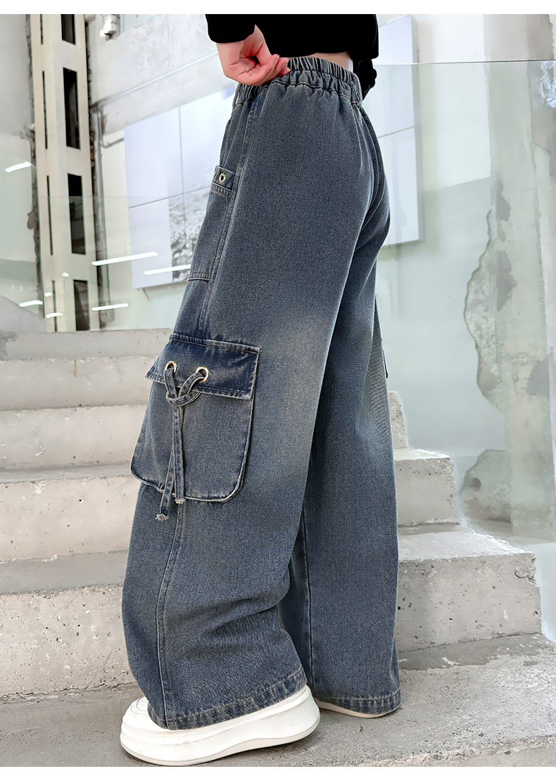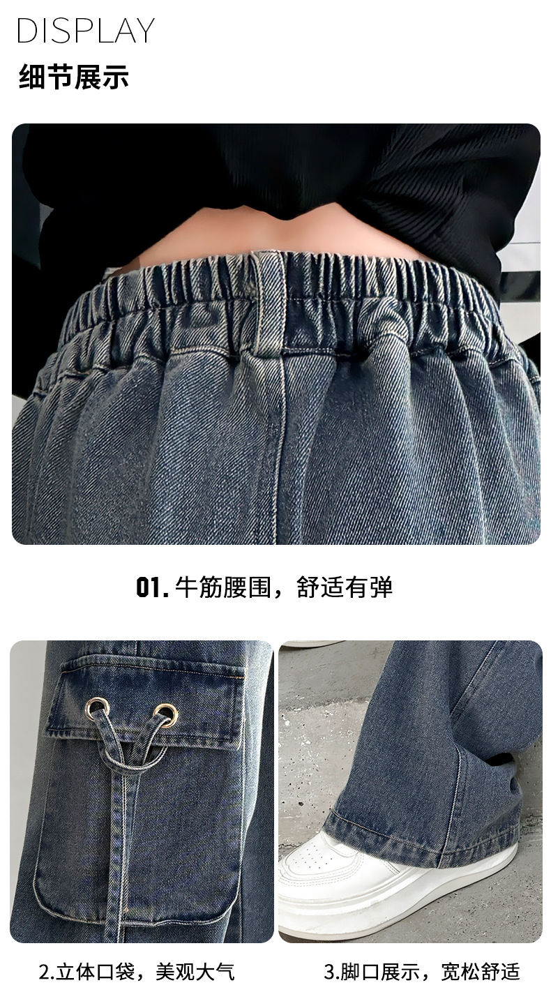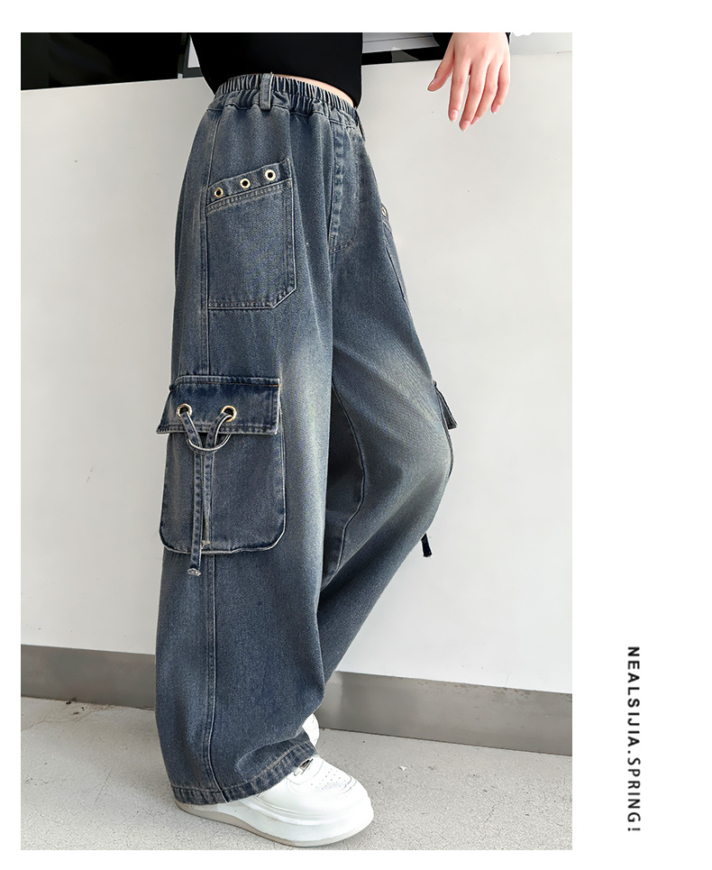 여아 작업복, 봄, 가을 여아 청바지, 트렌디하고 쿨한 루즈한 와이드 팬츠, 캐주얼 가을 아동 바지스토어 가기