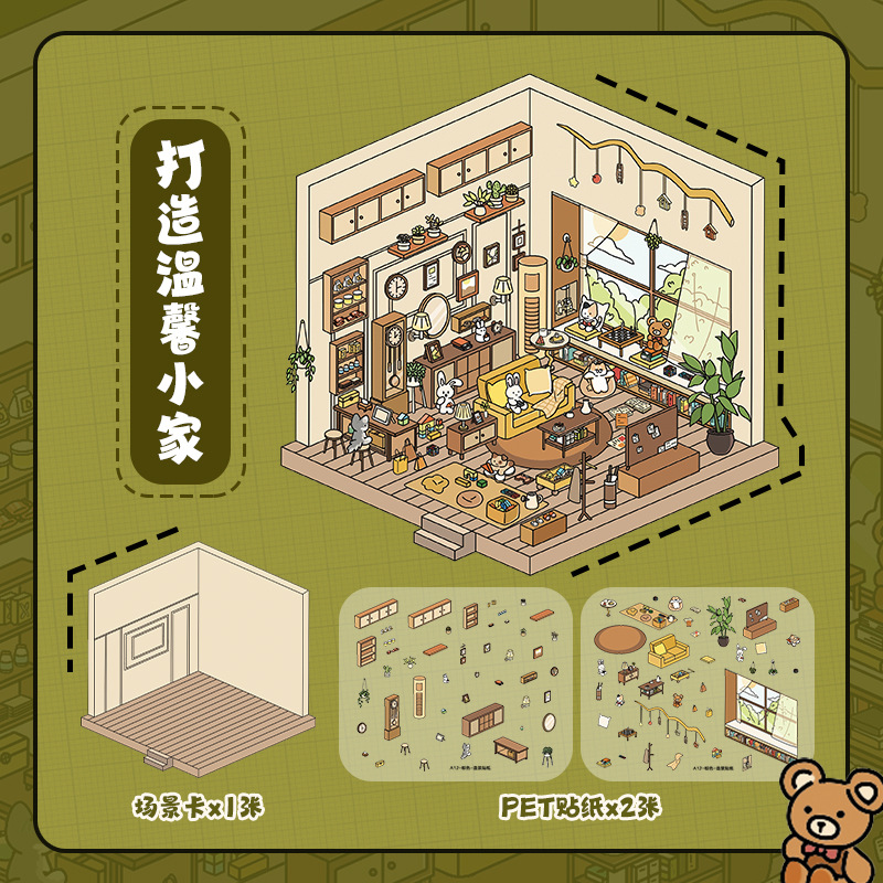 • 『샤오신 + 꼬마 + 꼬마곰 침실 + 꼬마곰 디저트 가게 + 따뜻한 작은 집』 5개 조합 무료