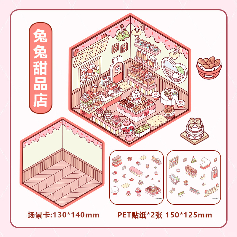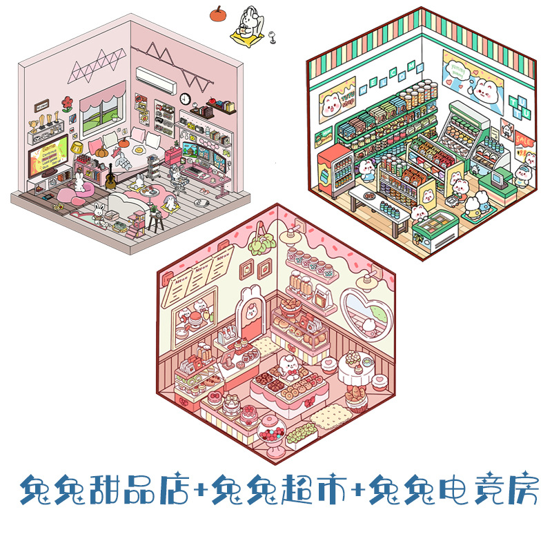 • "토끼 디저트 가게 + 토끼 슈퍼마켓 + 토끼 e스포츠룸"" 세 가지 조합으로 핀셋이 무료로 제공됩니다."