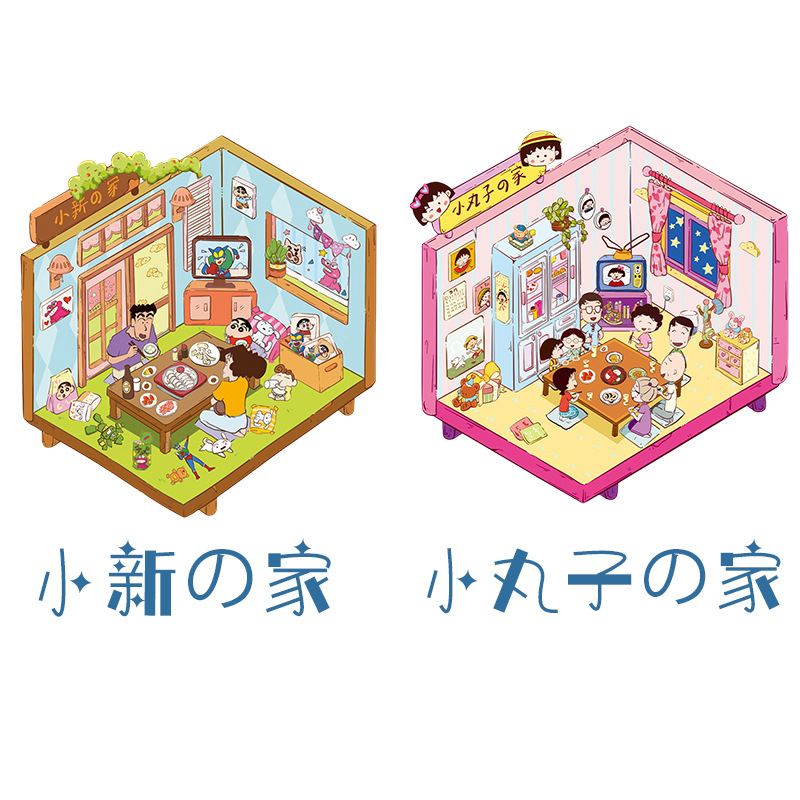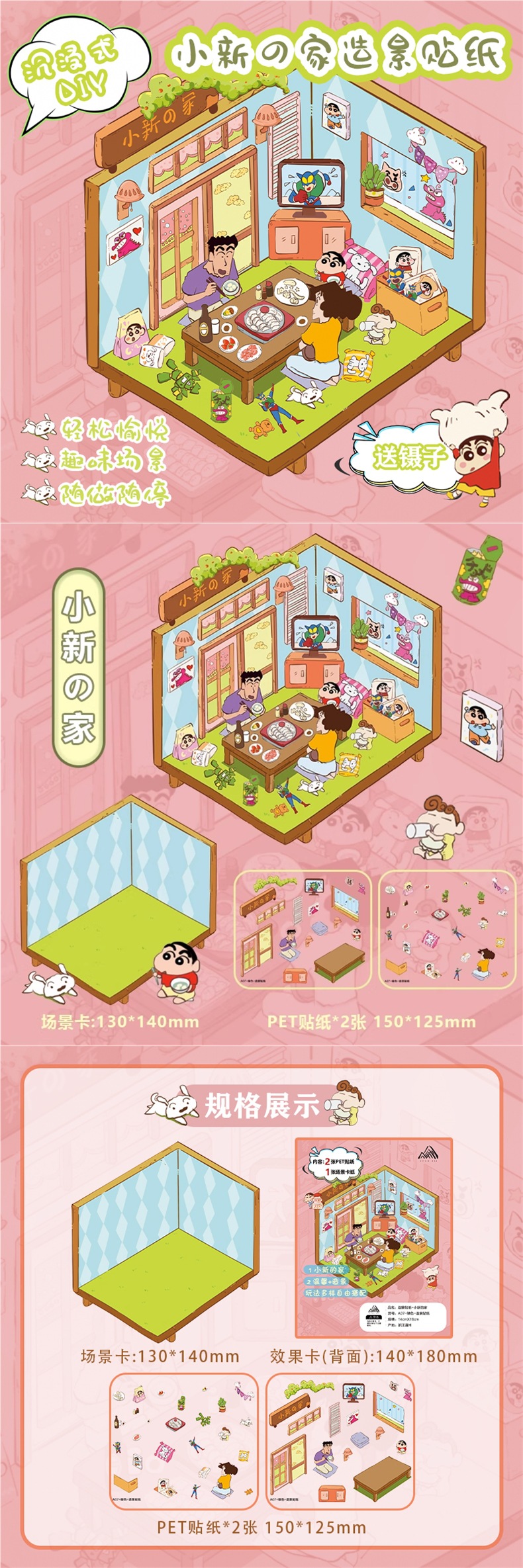 미니어처 장면 조경 스티커 크레용 신짱 3 입체 오두막 업그레이드된 고급스러운 한국식 귀여운 소녀 의상