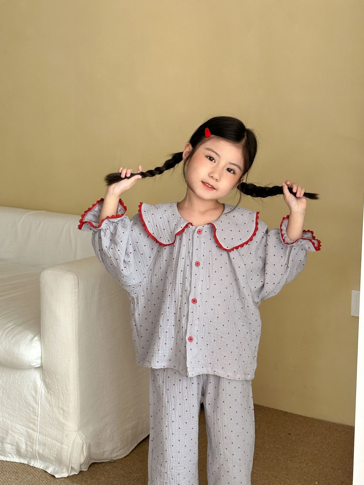 어린이 잠옷 소년 순면 거즈 카테고리 a 2025 새로운 봄, 가을 아기 긴팔 양복 소녀 가정 의류