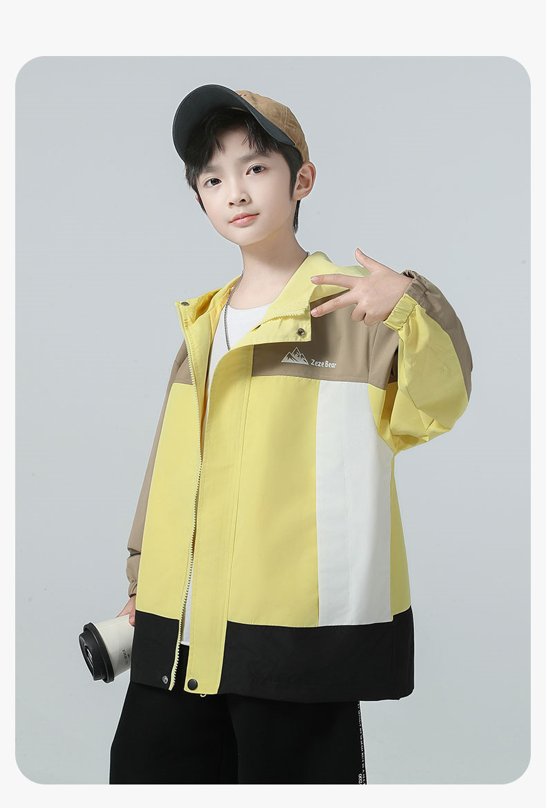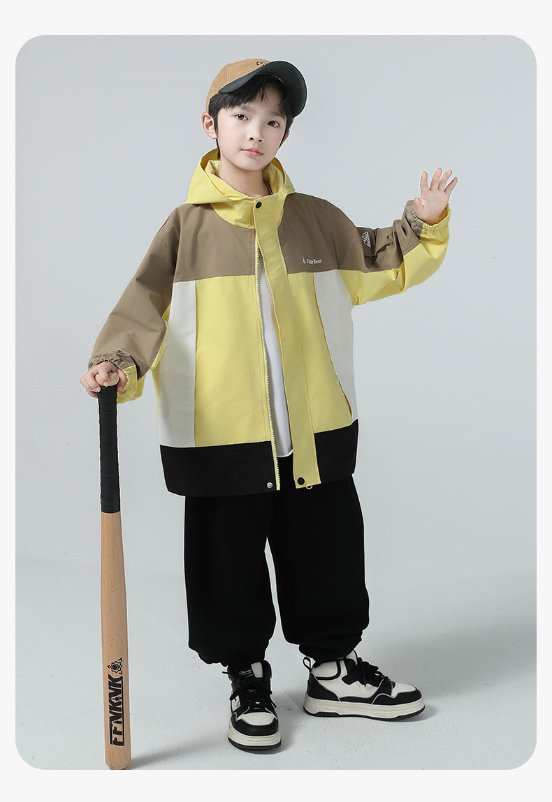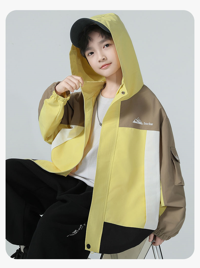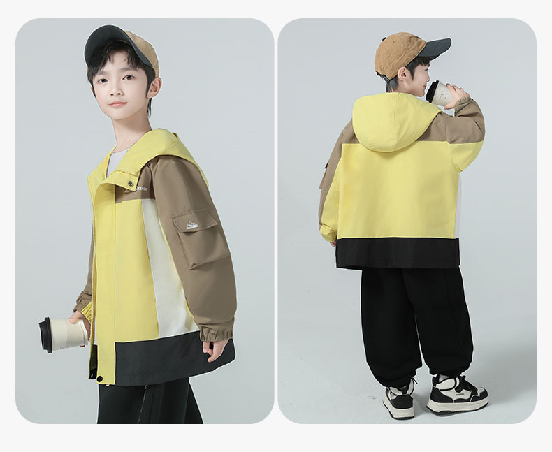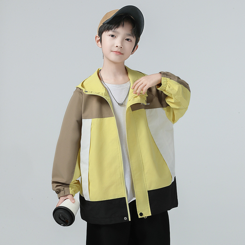 남아용 코트 2025 가을 신상 중대형 아동용 스타일리시한 컬러 블록 후드 재킷 아웃도어 방풍 트렌디 상품