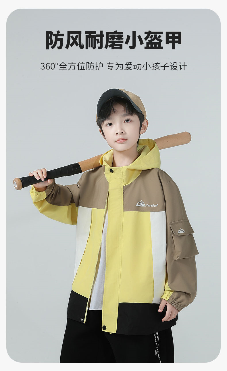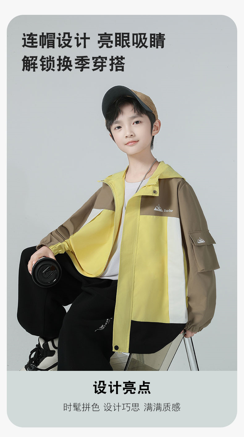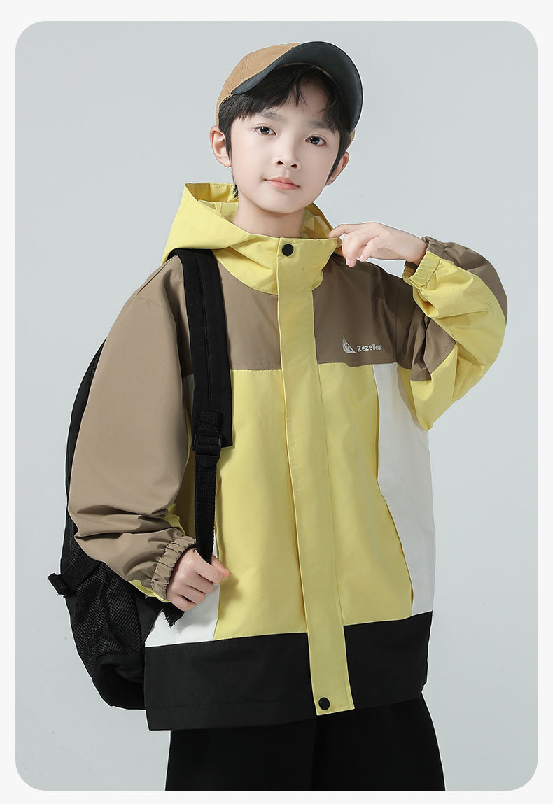 남아용 코트 2025 가을 신상 중대형 아동용 스타일리시한 컬러 블록 후드 재킷 아웃도어 방풍 트렌디 상품