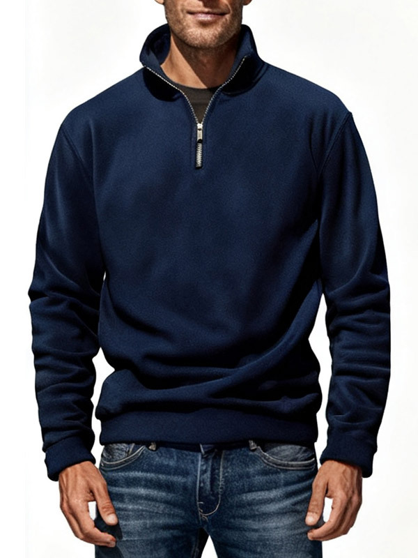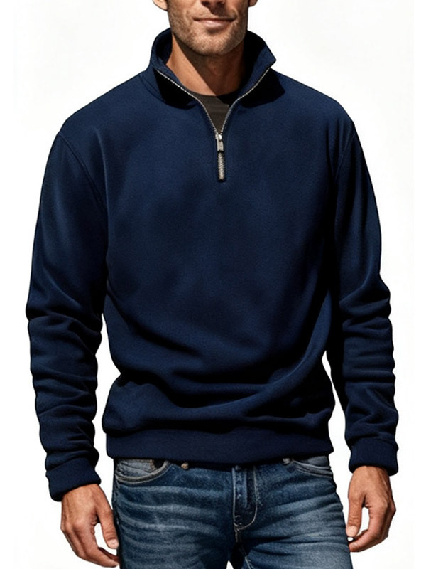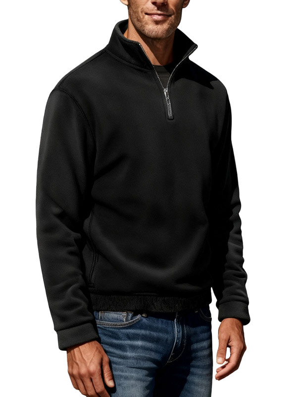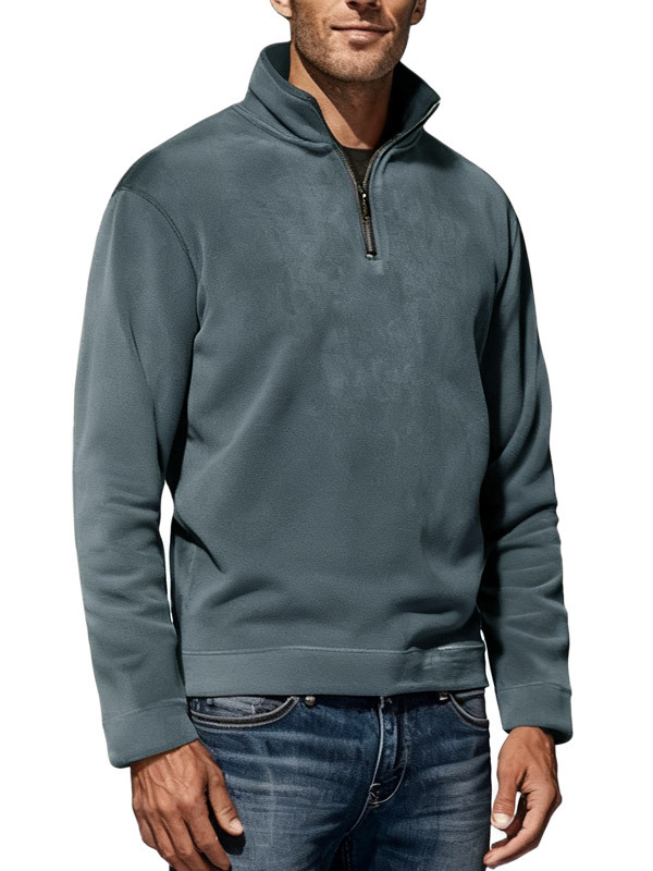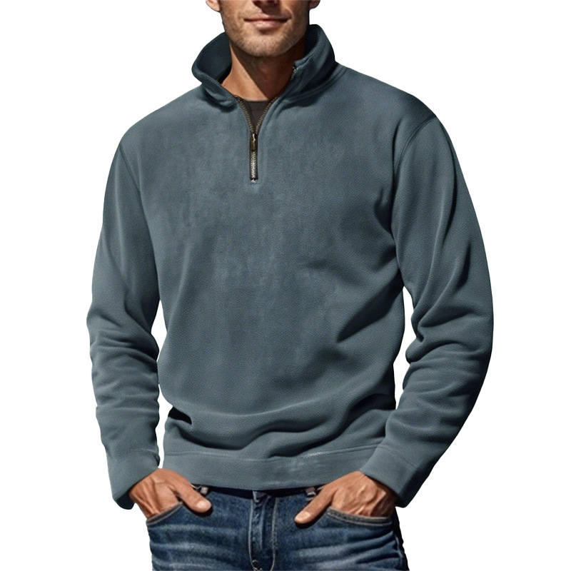 아마존 2026 가을 겨울 신상품 남성용 폴라플리스 상의, 단색 심플 캐주얼 스탠드 칼라 풀오버 스웨트셔츠