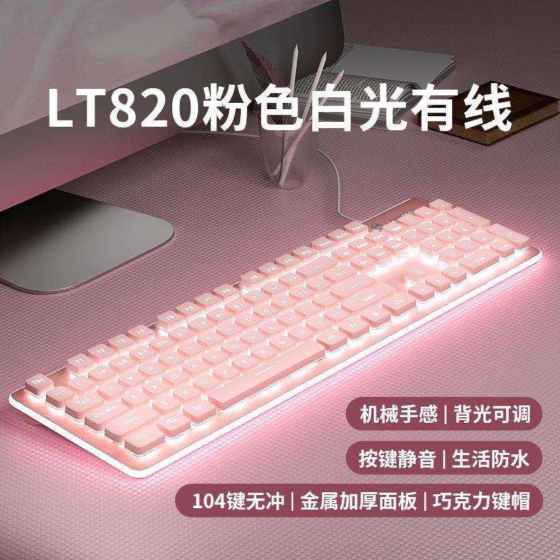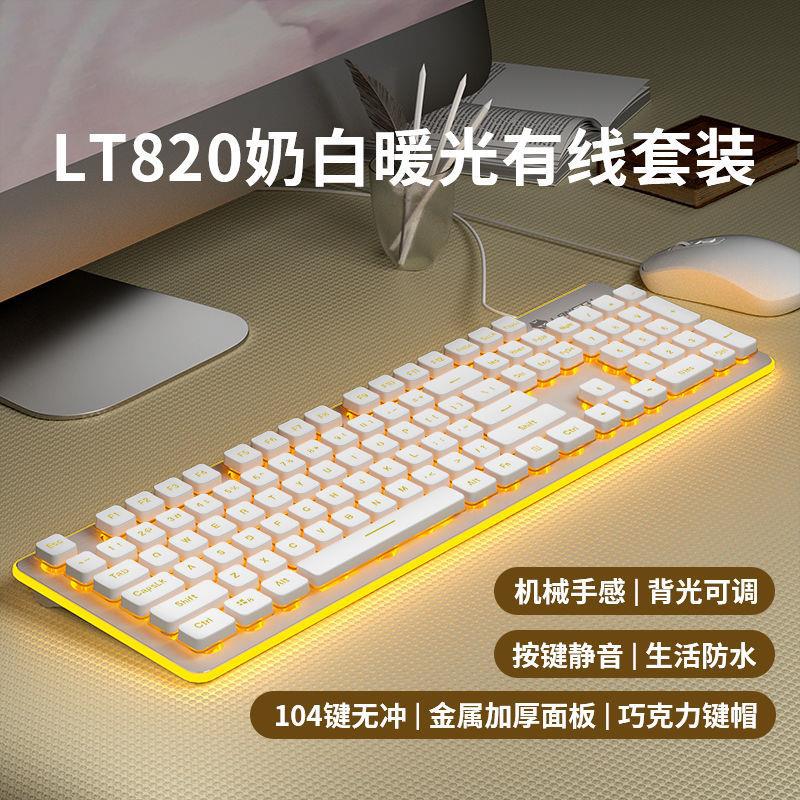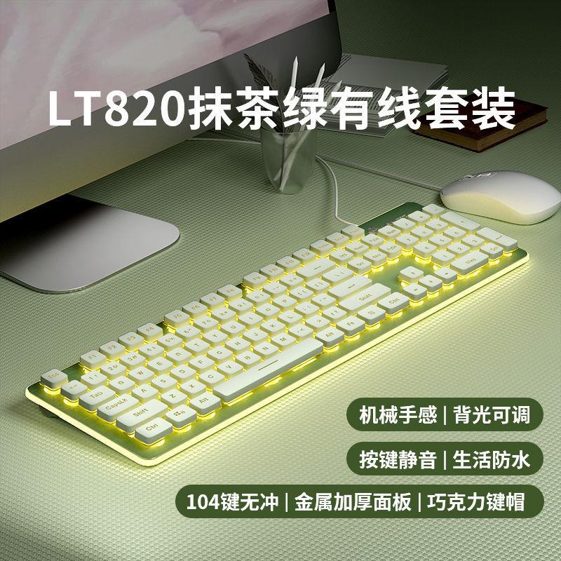 LT820 키보드 초저소음 기계적 느낌 유선 발광 컴퓨터 태블릿 소녀 사무실 키보드 및 마우스 세트 무선