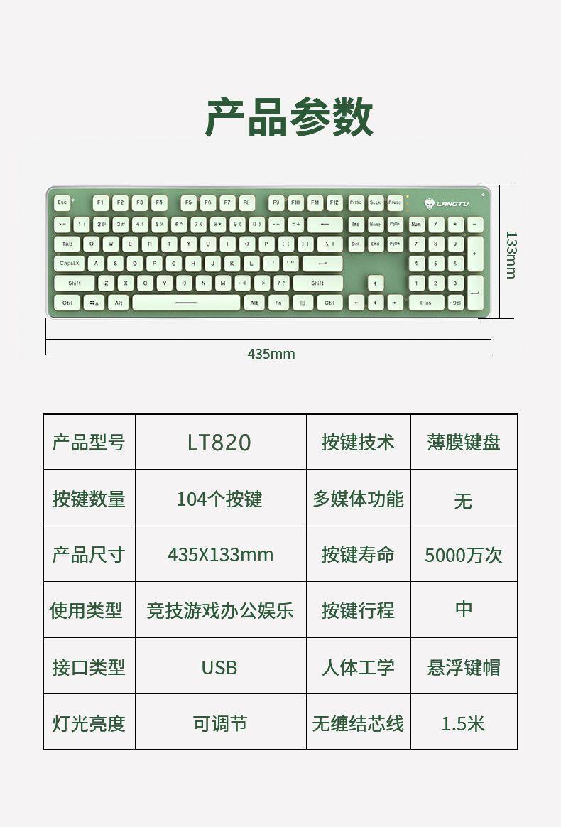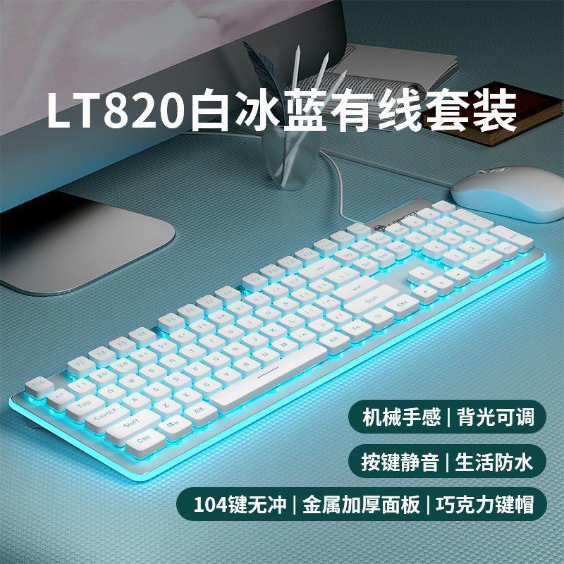 LT820 키보드 초저소음 기계적 느낌 유선 발광 컴퓨터 태블릿 소녀 사무실 키보드 및 마우스 세트 무선스토어 가기