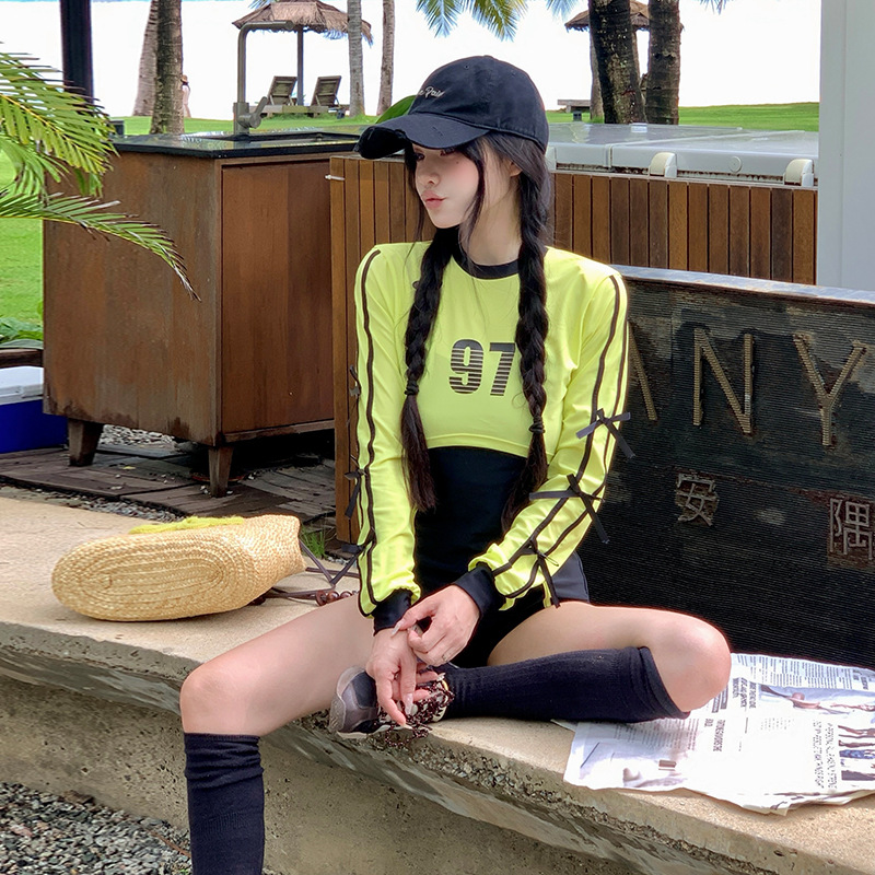원피스 서핑 슈트, 해파리 슈트, 여성용 스노클링 수영복, 보수적인 슬리밍 긴팔 대비 색상 스포츠 스타일 수영복스토어 가기