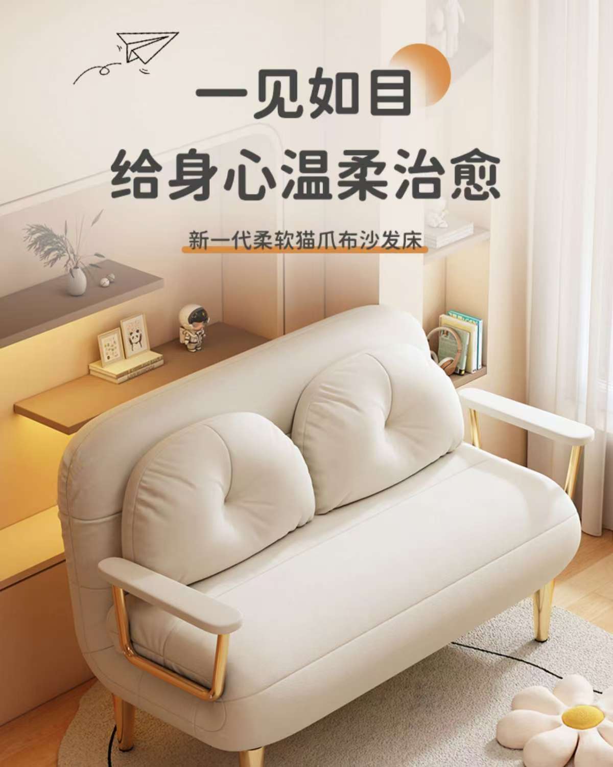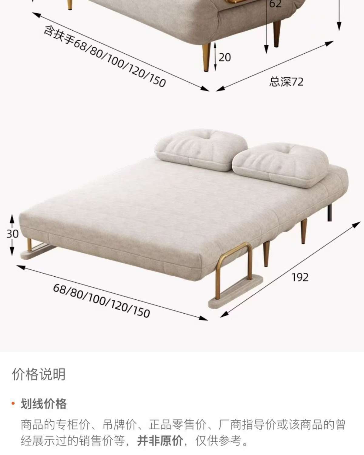 접이식 소파 베드 이중 목적 싱글 작은 아파트 발코니 거실 다기능 클라우드 소파 크림 스타일 간단한 소파스토어 가기