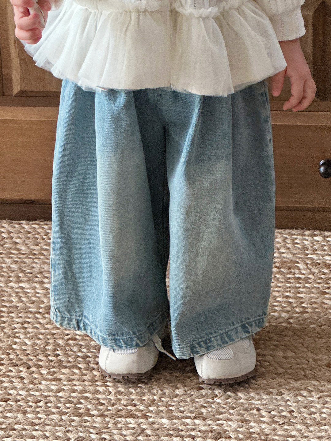 2025 가을 신작 코트 카디건 데님 와이드 팬츠 투피스 세트 아기 소녀 한국 스타일 봄, 가을 정장 외출복스토어 가기