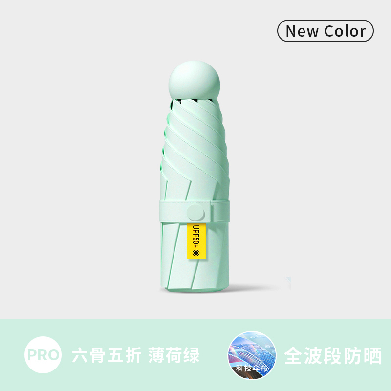 • 민트 그린 [ 50% off 캡슐 우산 컴팩트하고 휴대 가능한 UPF50+ 전문 자외선 차단제]