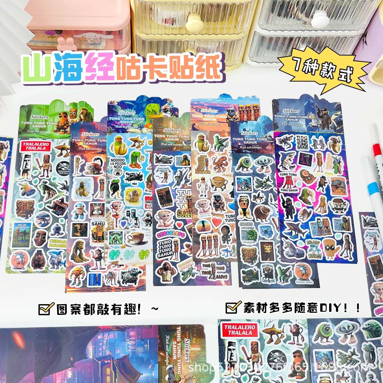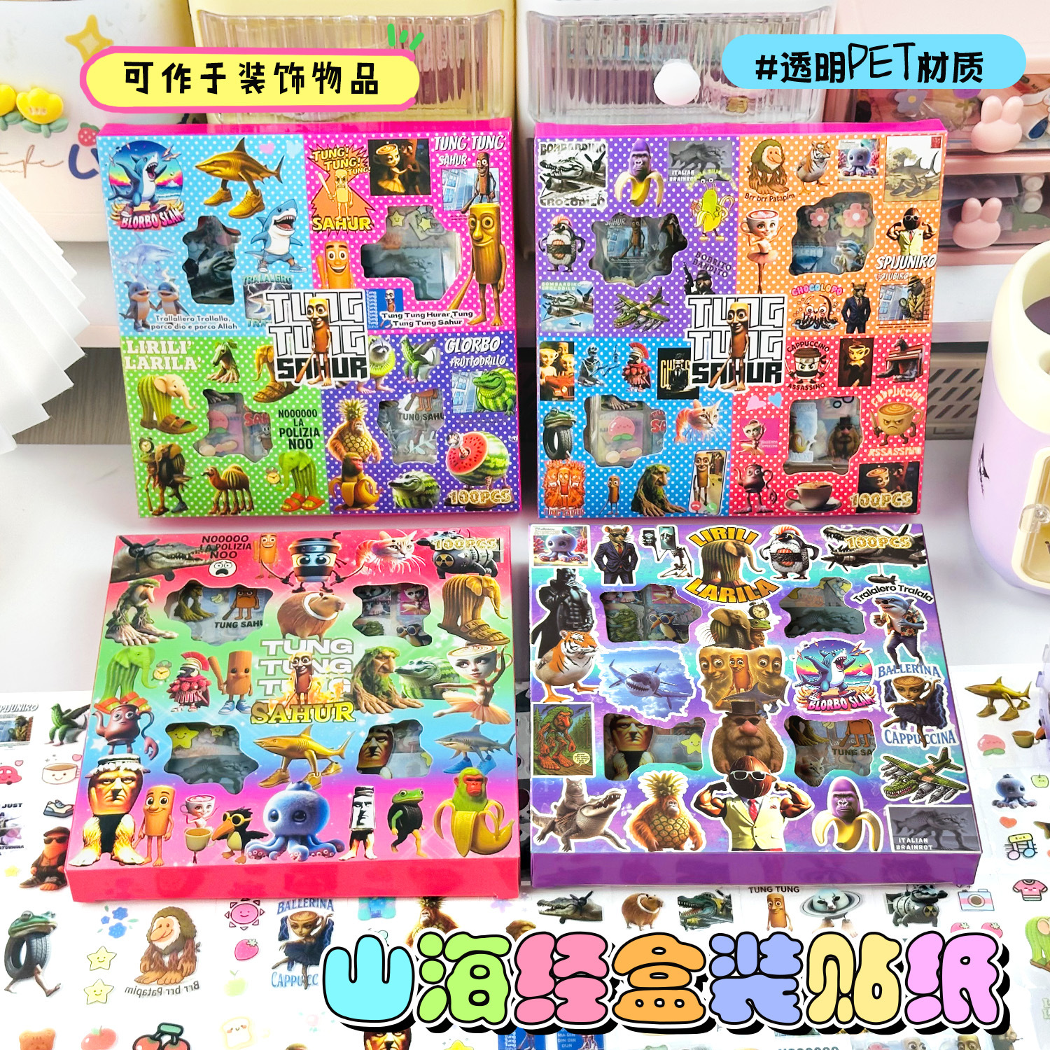 새로운 AI 산과 바다 이야기 박스형 크리 에이 티브 스티커 낙서 재미 있은 인형 만화 워터 컵 방수 장식 핸드북 스티커스토어 가기