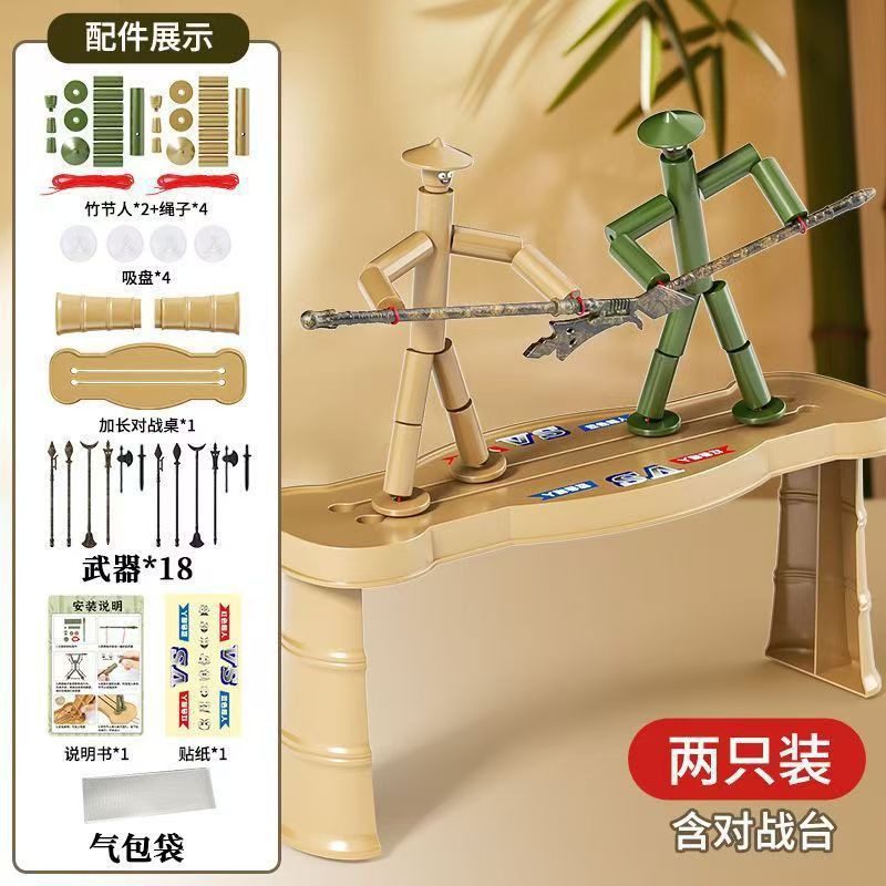 • [녹색 + 갈색] 쌍전 대나무 남자 + 무기 18개 [플라스틱 풀세트]