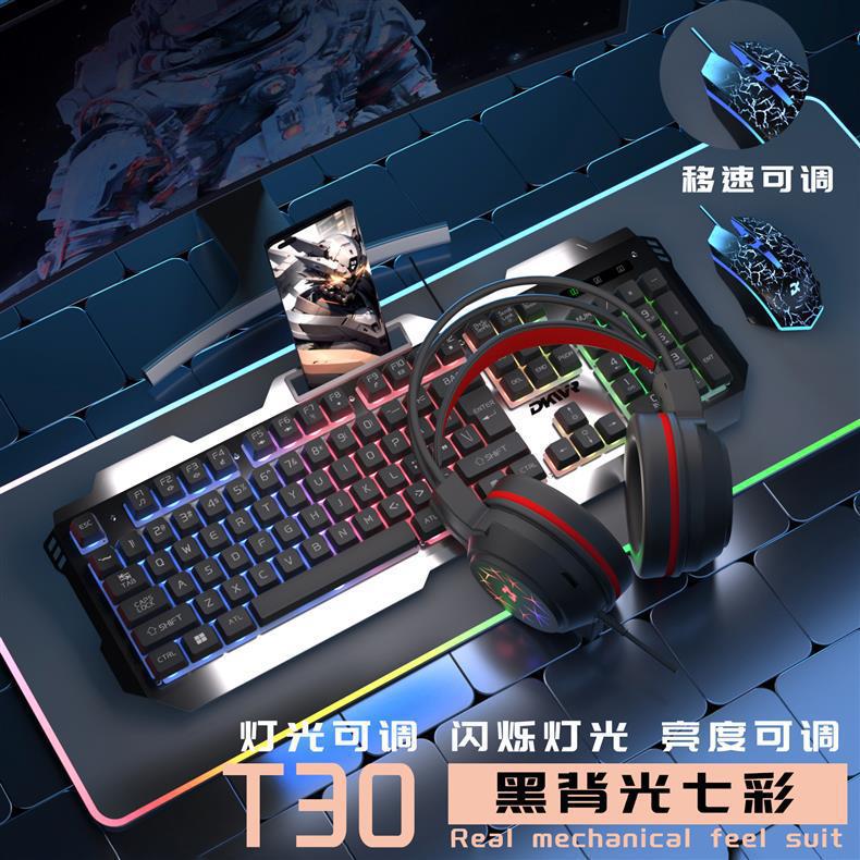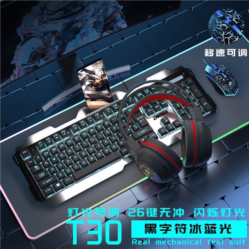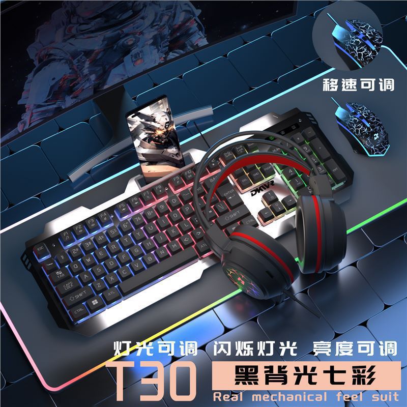 이어폰 3종 세트, e스포츠 게임, 기계식 느낌, 유선 키보드 및 마우스, 컴퓨터 범용 키보드 및 마우스 세트, 사무실스토어 가기