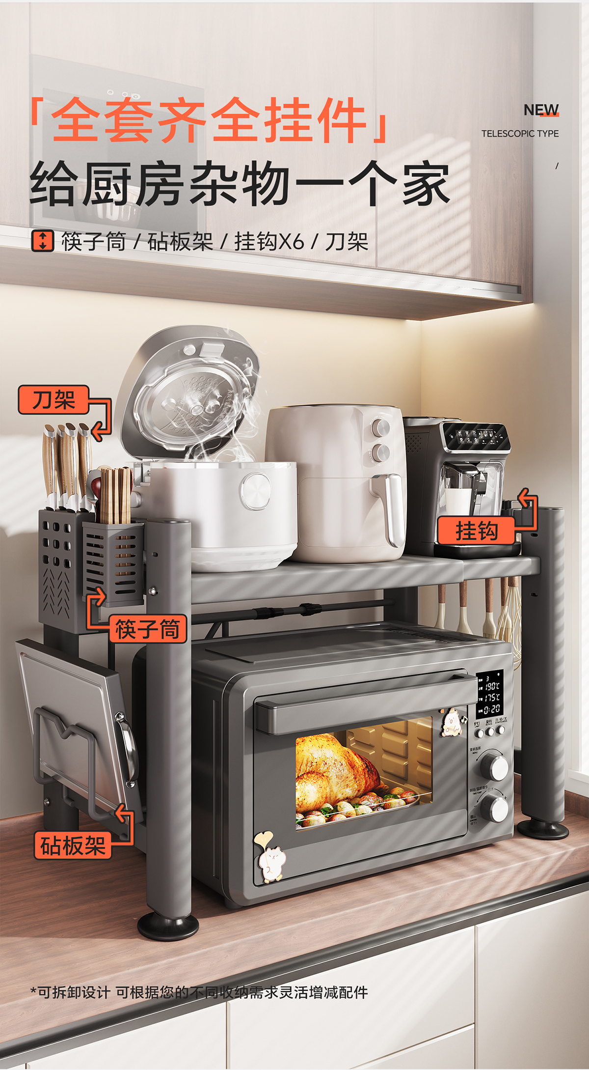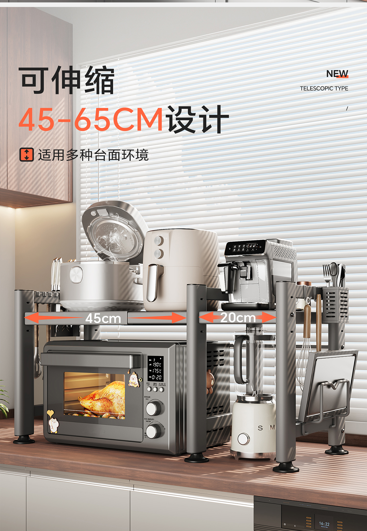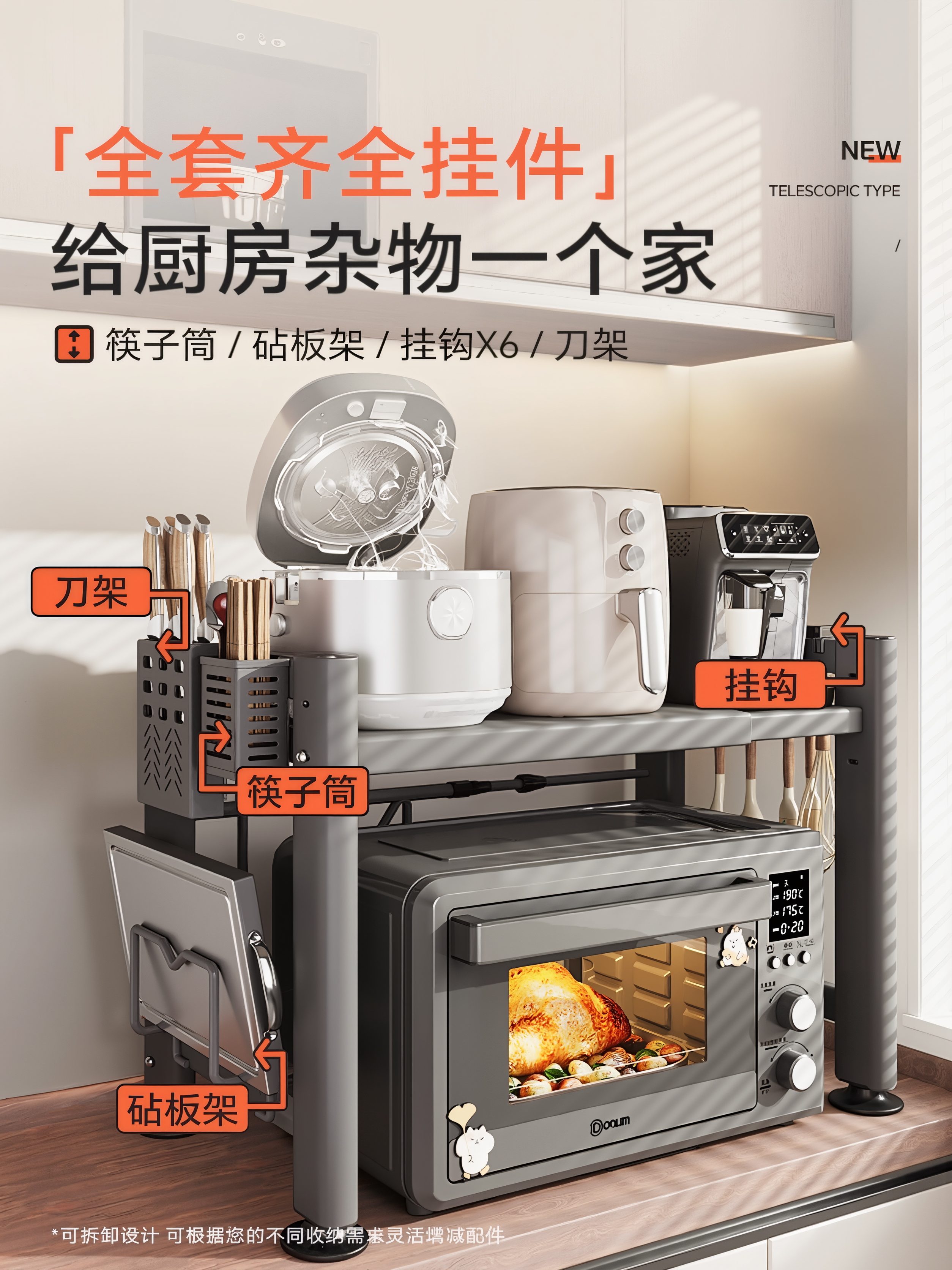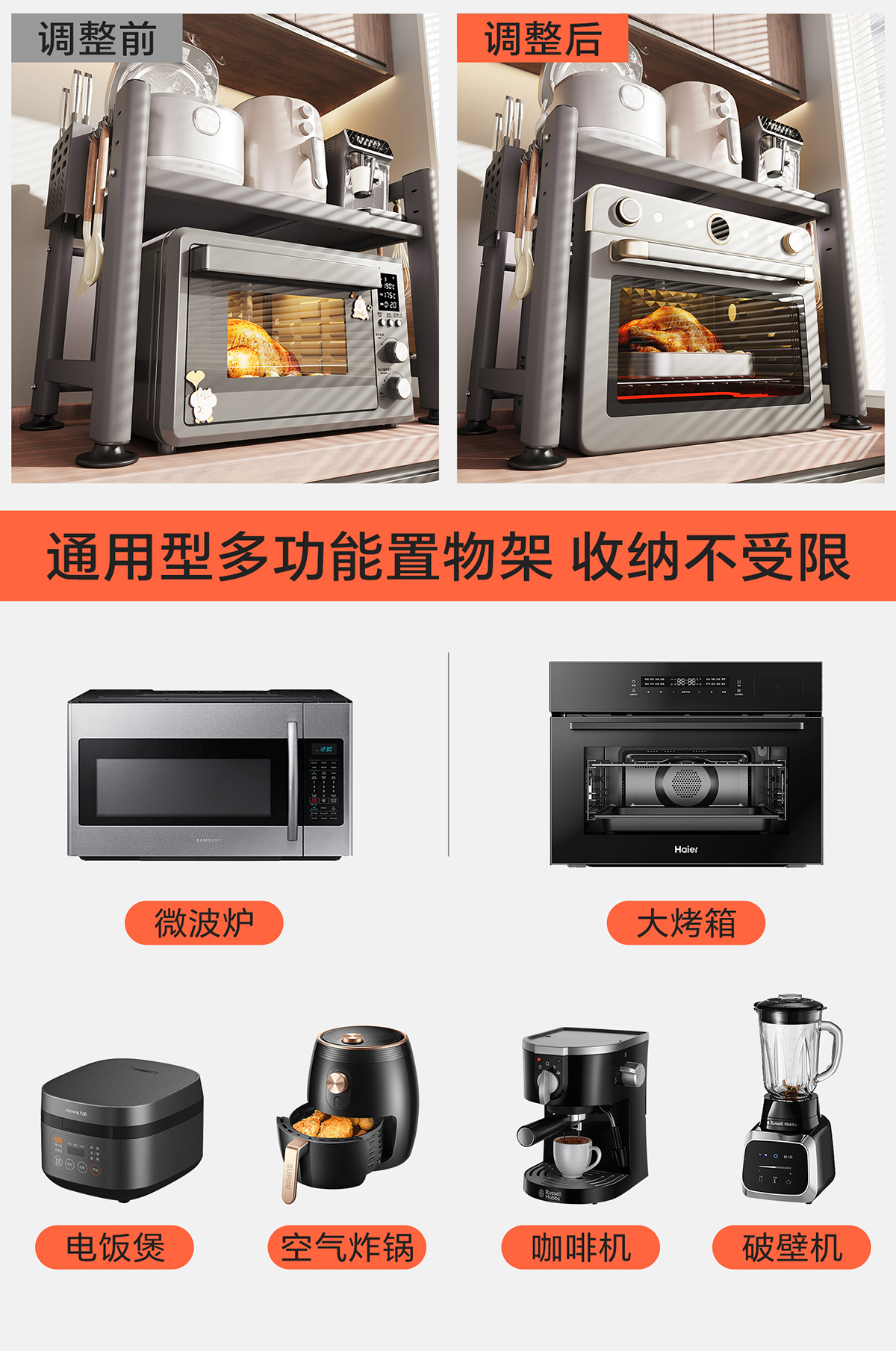 ♔ 주방 전자레인지 선반, 다기능 밥솥 일체형 확장형 스탠드, 가전제품 오븐 수납 선반