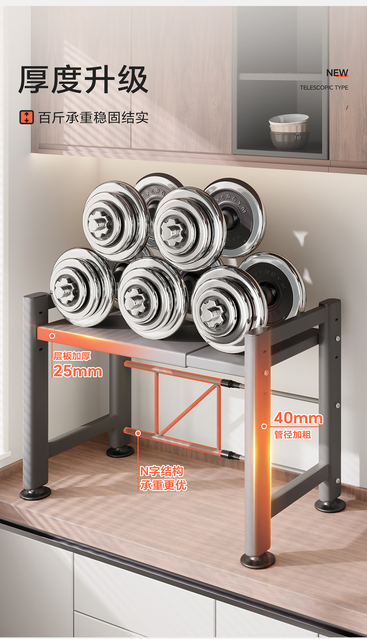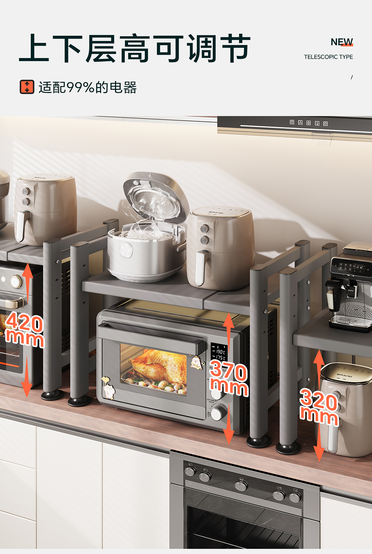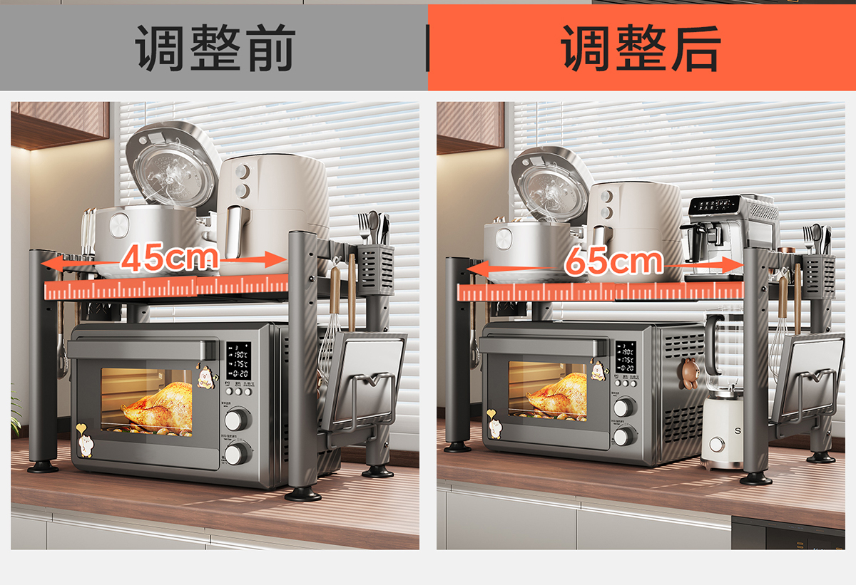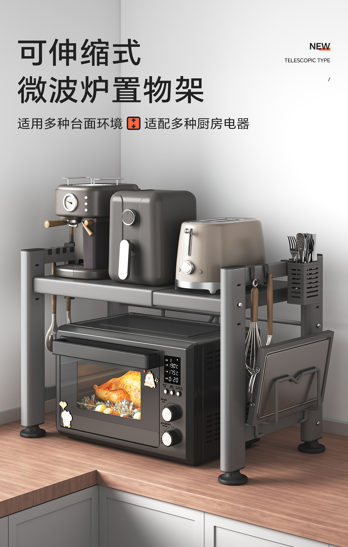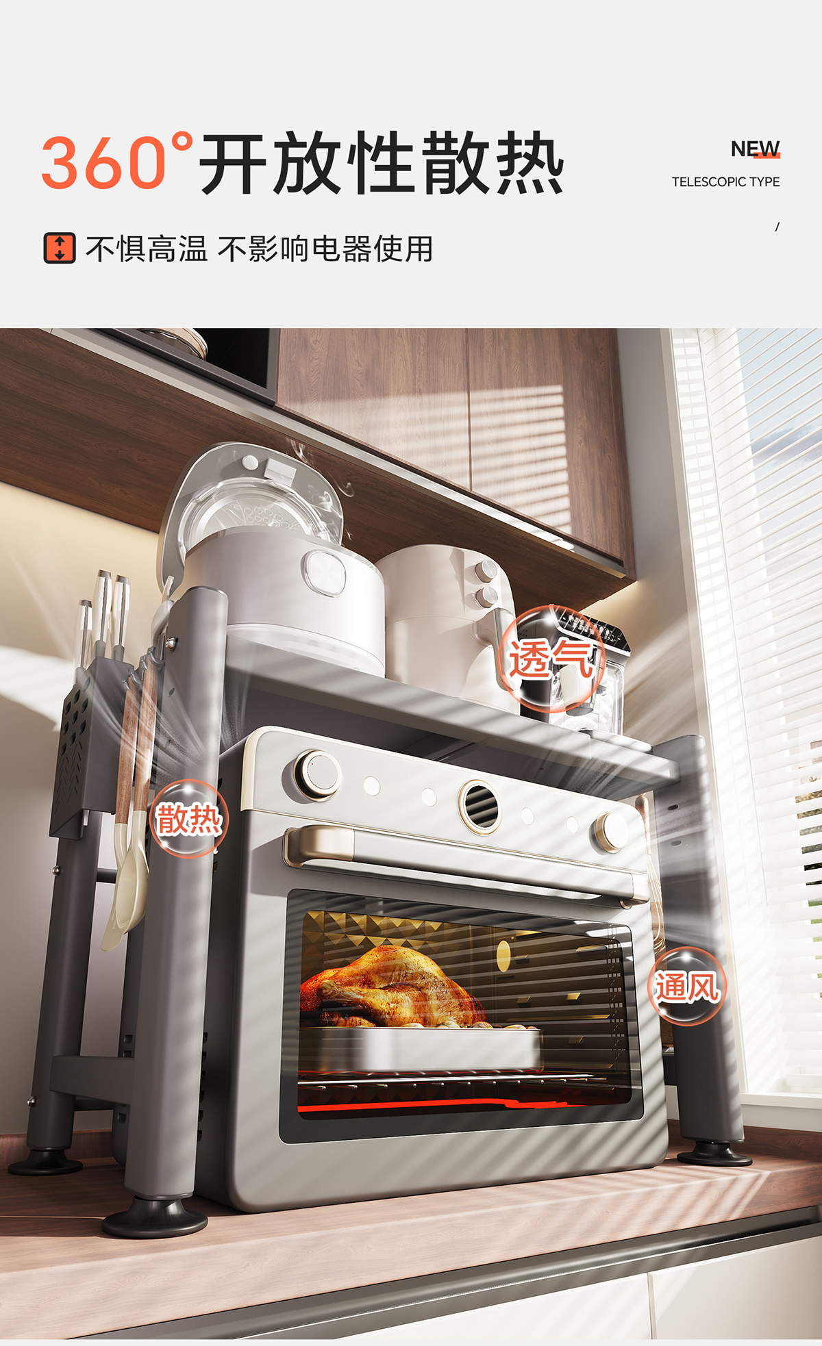 ♔ 주방 전자레인지 선반, 다기능 밥솥 일체형 확장형 스탠드, 가전제품 오븐 수납 선반