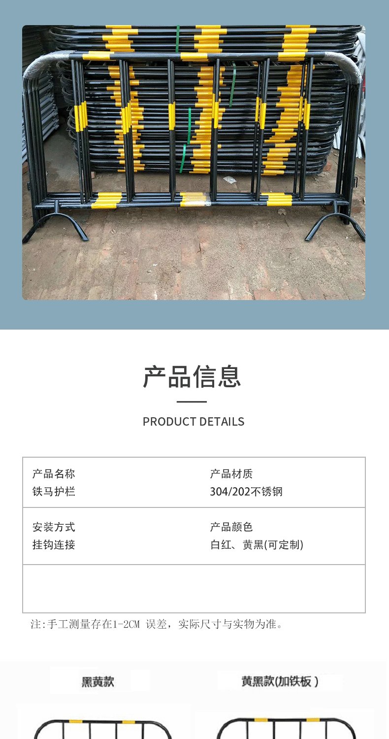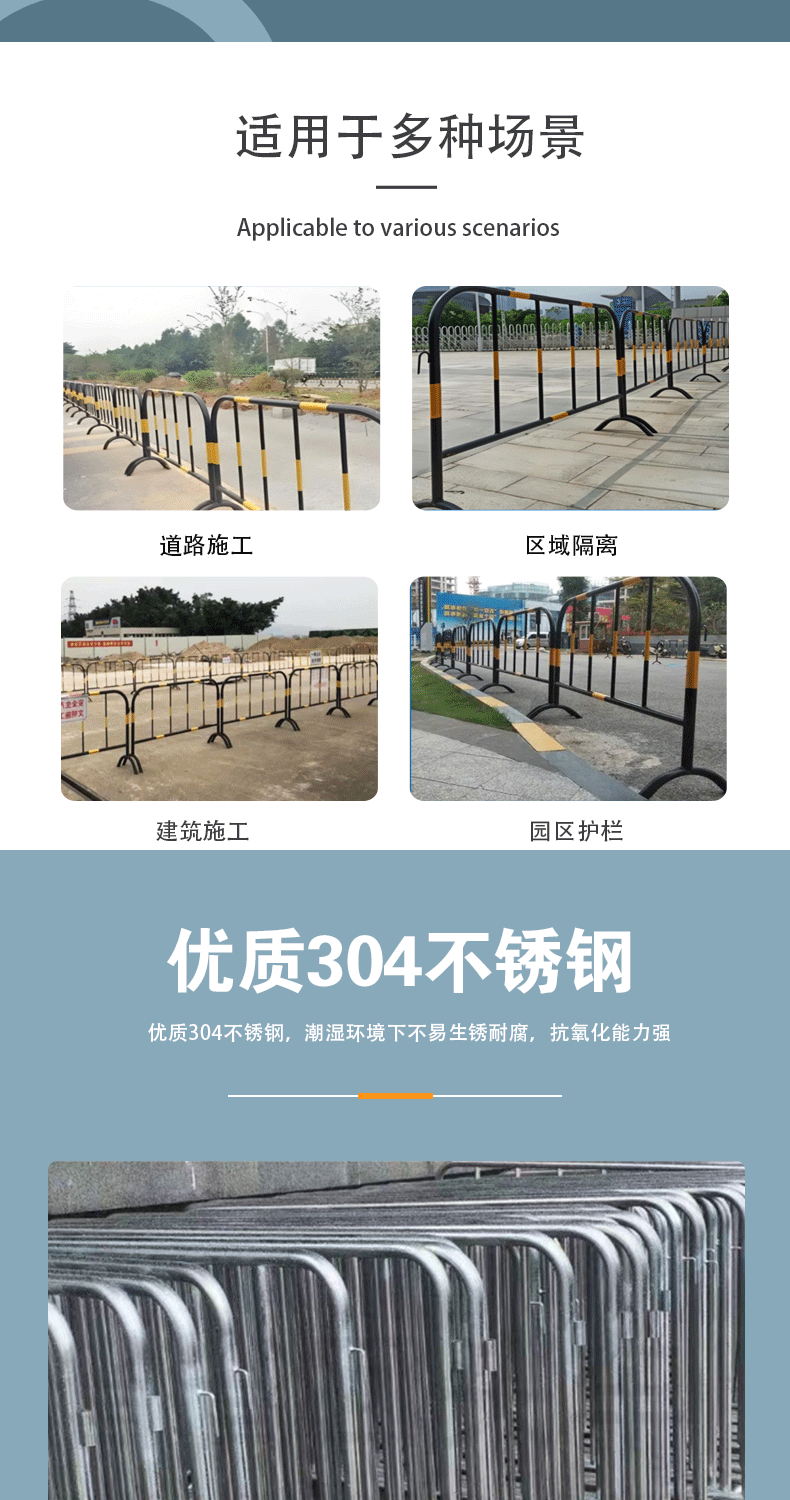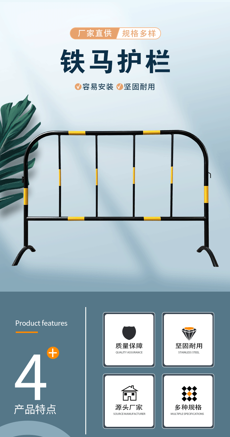 임시 난간 스테인레스 스틸 울타리 철제 말 가드 레일 이동식 건설 현장 도로 건설 안전 격리 가드 레일
