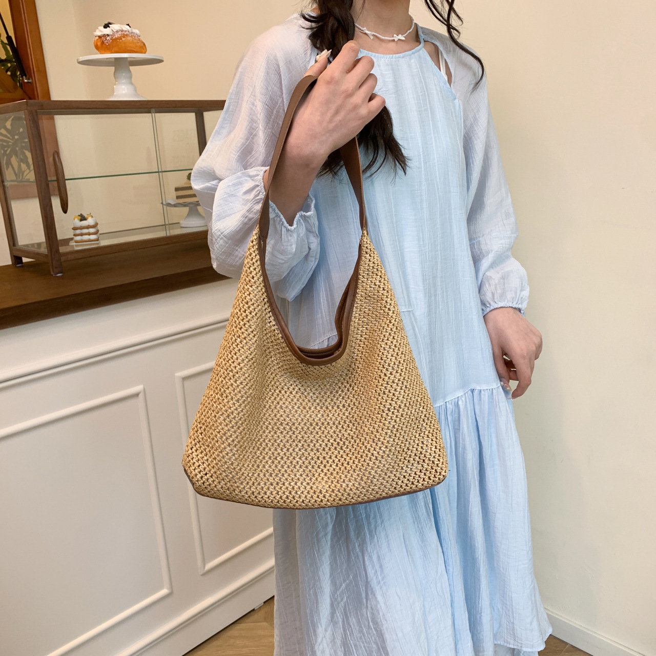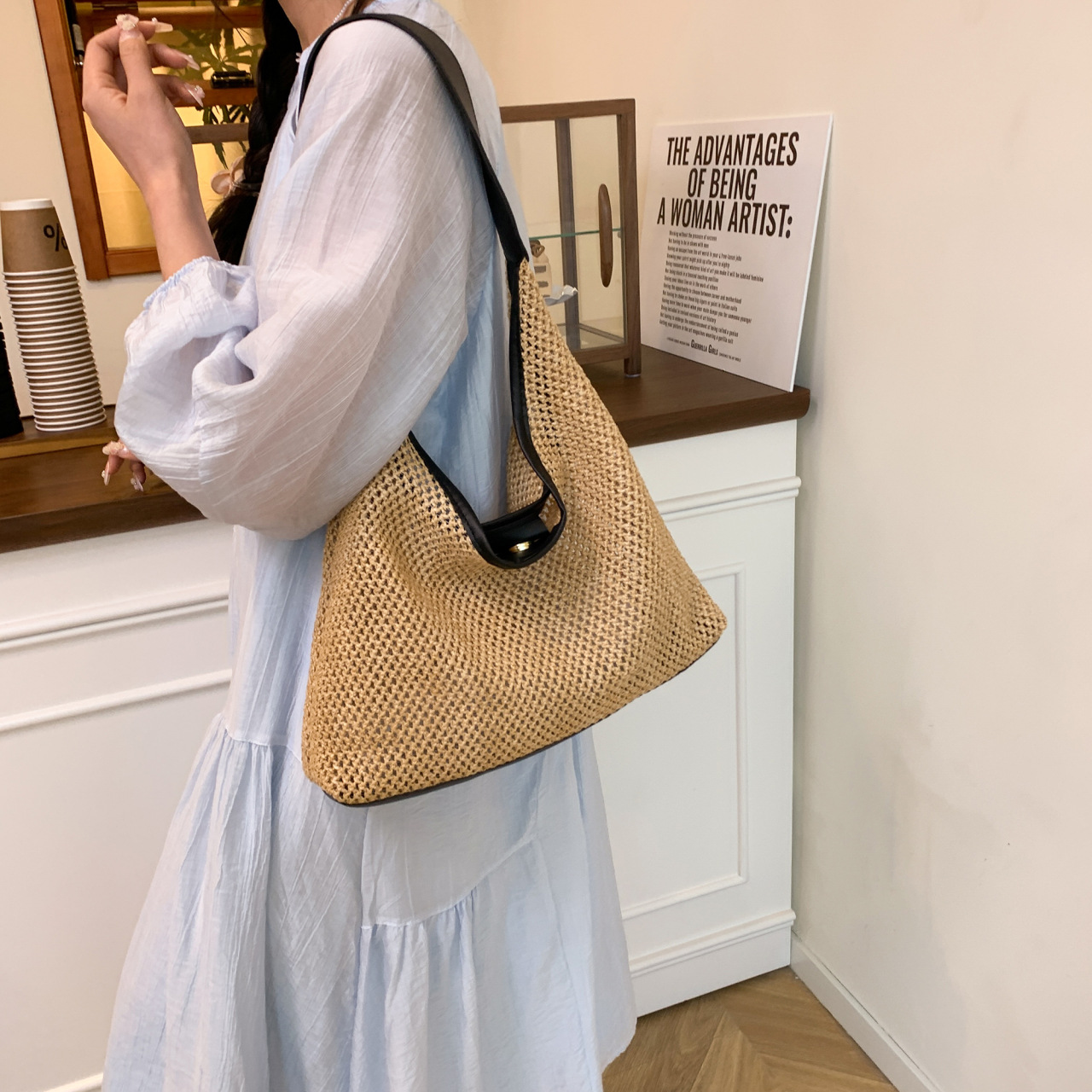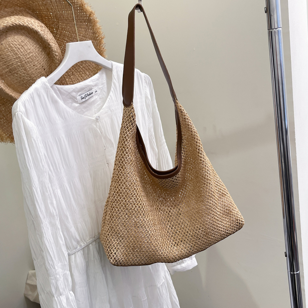 여성을위한 대용량 빈티지 짠 어깨 가방 가방 2025 새로운 밀짚 핸드백 휴가 해변 가방 여성스토어 가기