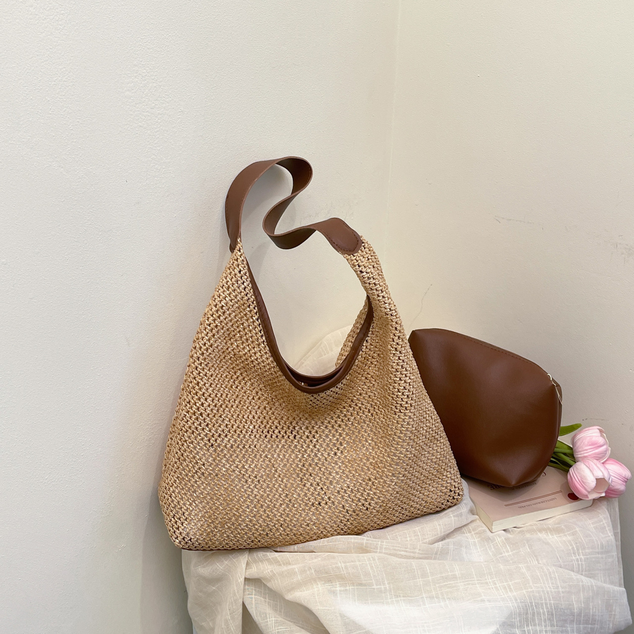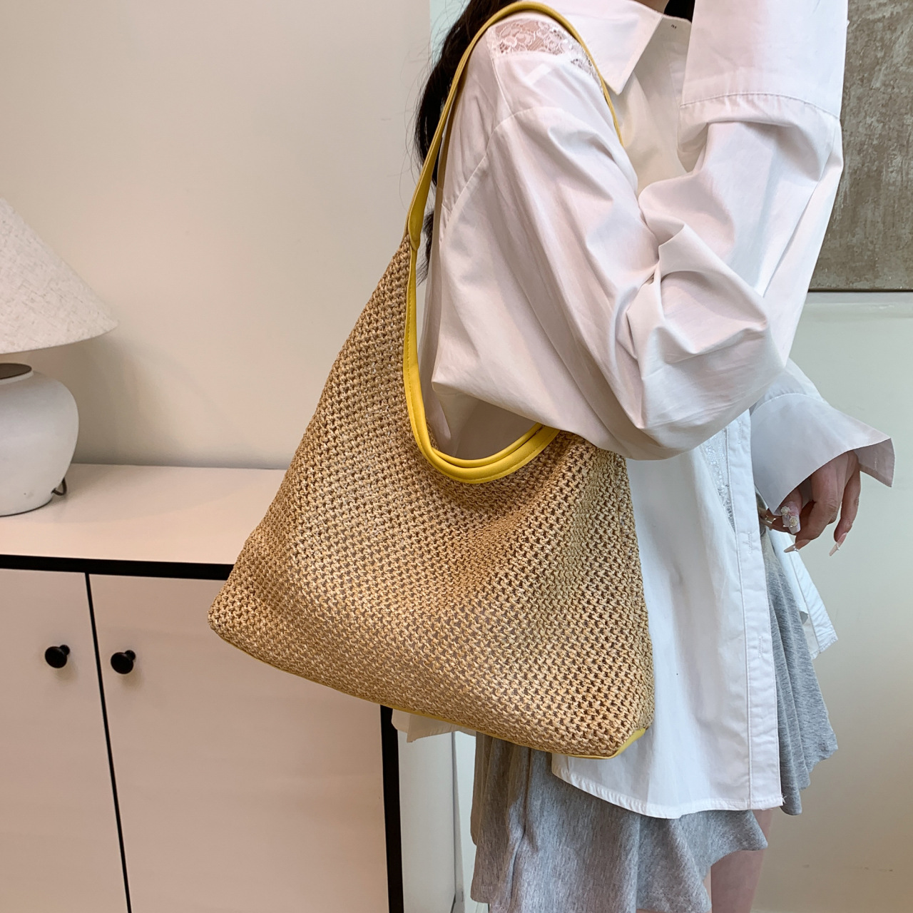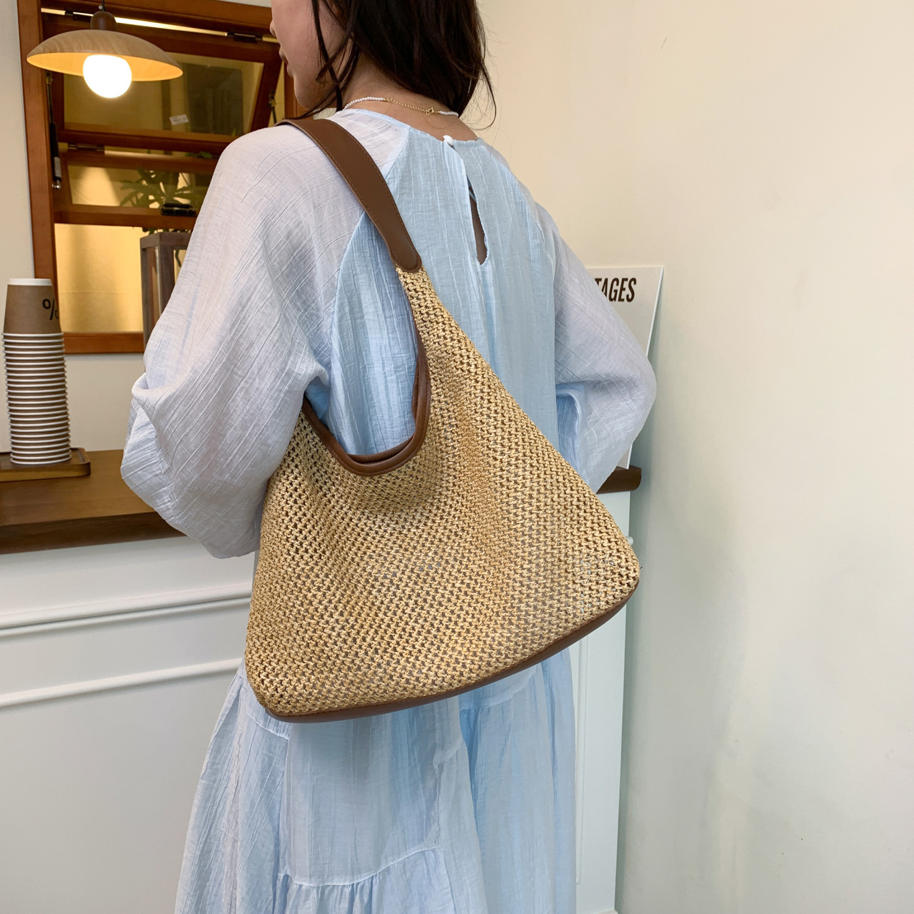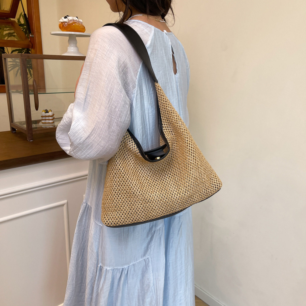 여성을위한 대용량 빈티지 짠 어깨 가방 가방 2025 새로운 밀짚 핸드백 휴가 해변 가방 여성스토어 가기