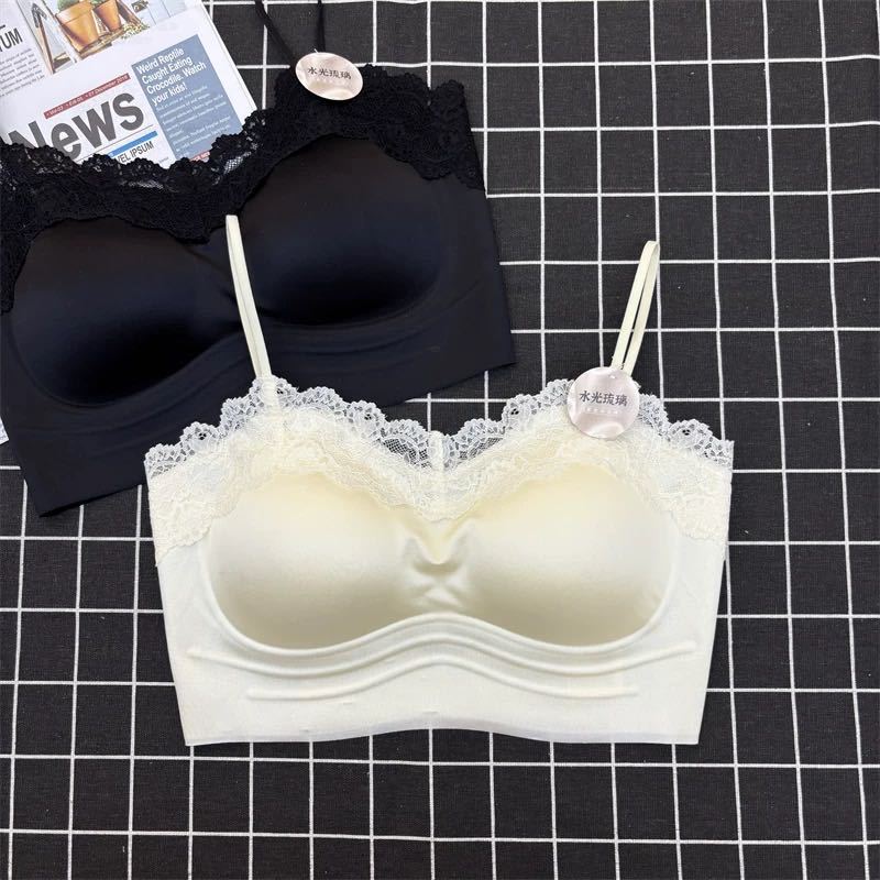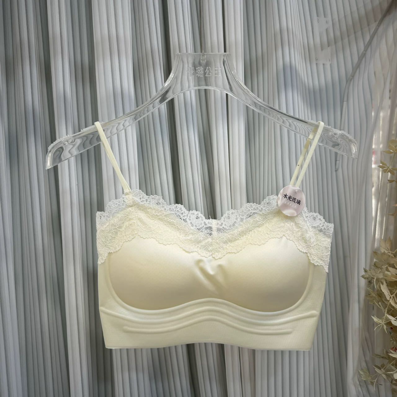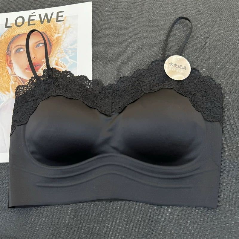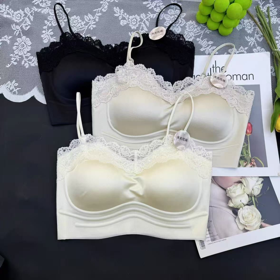 젤리 스트립 소프트 서포트 심리스 아이스 실크 새틴 프렌치 레이스 가슴 패드 일체형 편안하고 통기성이 좋은 여성용 아름다운 백 조끼