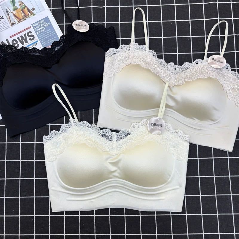 젤리 스트립 소프트 서포트 심리스 아이스 실크 새틴 프렌치 레이스 가슴 패드 일체형 편안하고 통기성이 좋은 여성용 아름다운 백 조끼스토어 가기