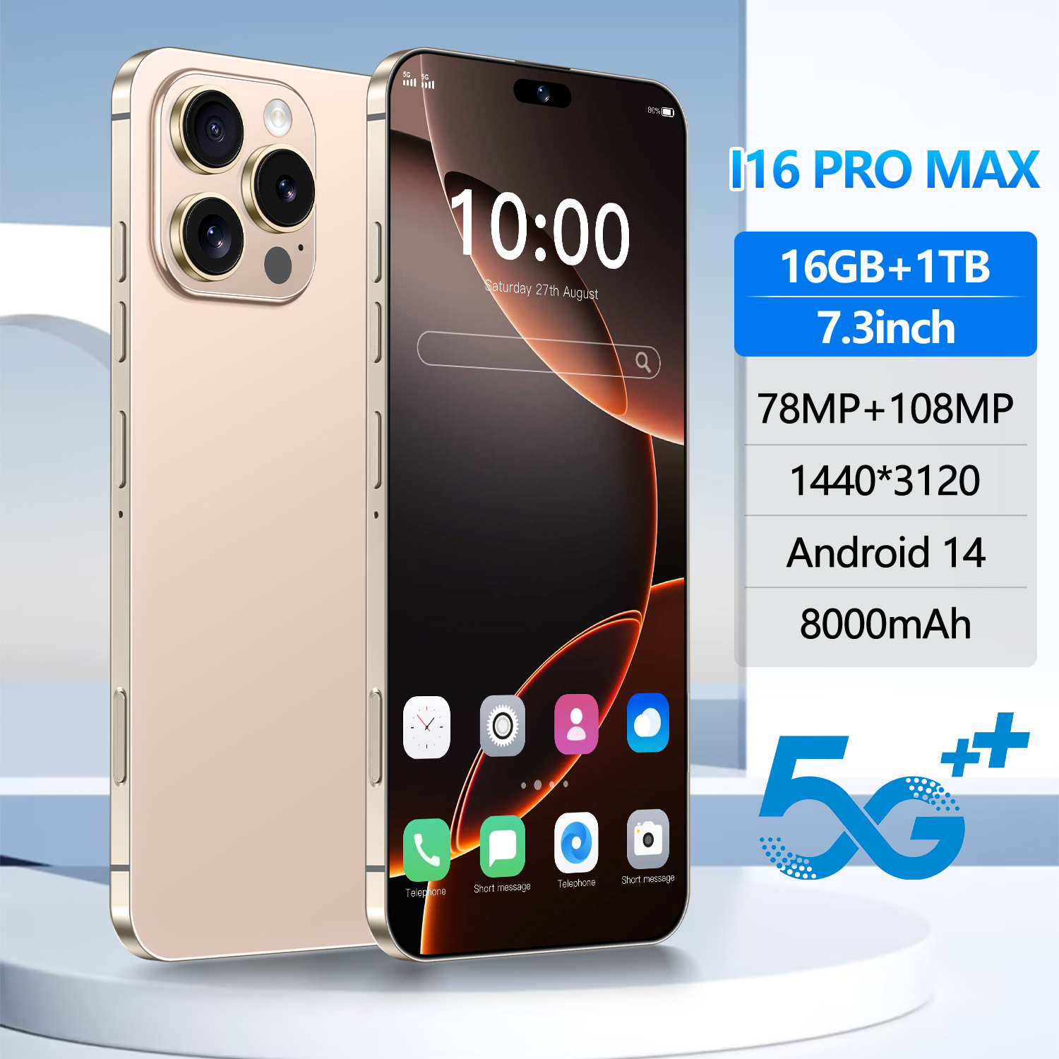 국경 간 휴대폰 i16pro max 글로벌 버전 진정한 4G 옥타 코어 7.3inch 대형 화면 중앙 천공 Android 14 4+128스토어 가기