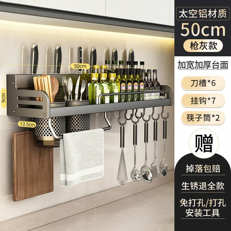 구멍이 없는 주방 수납 선반, 다기능 공간 알루미늄 가정용 벽걸이형 젓가락 및 칼 홀더 용품 수납 선반스토어 가기