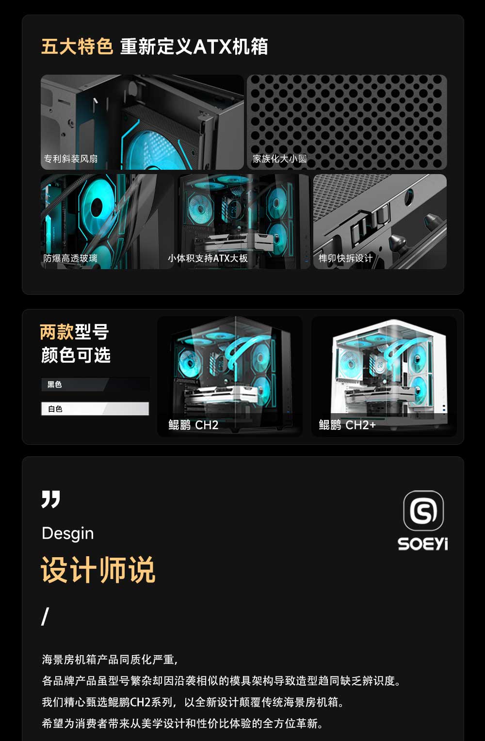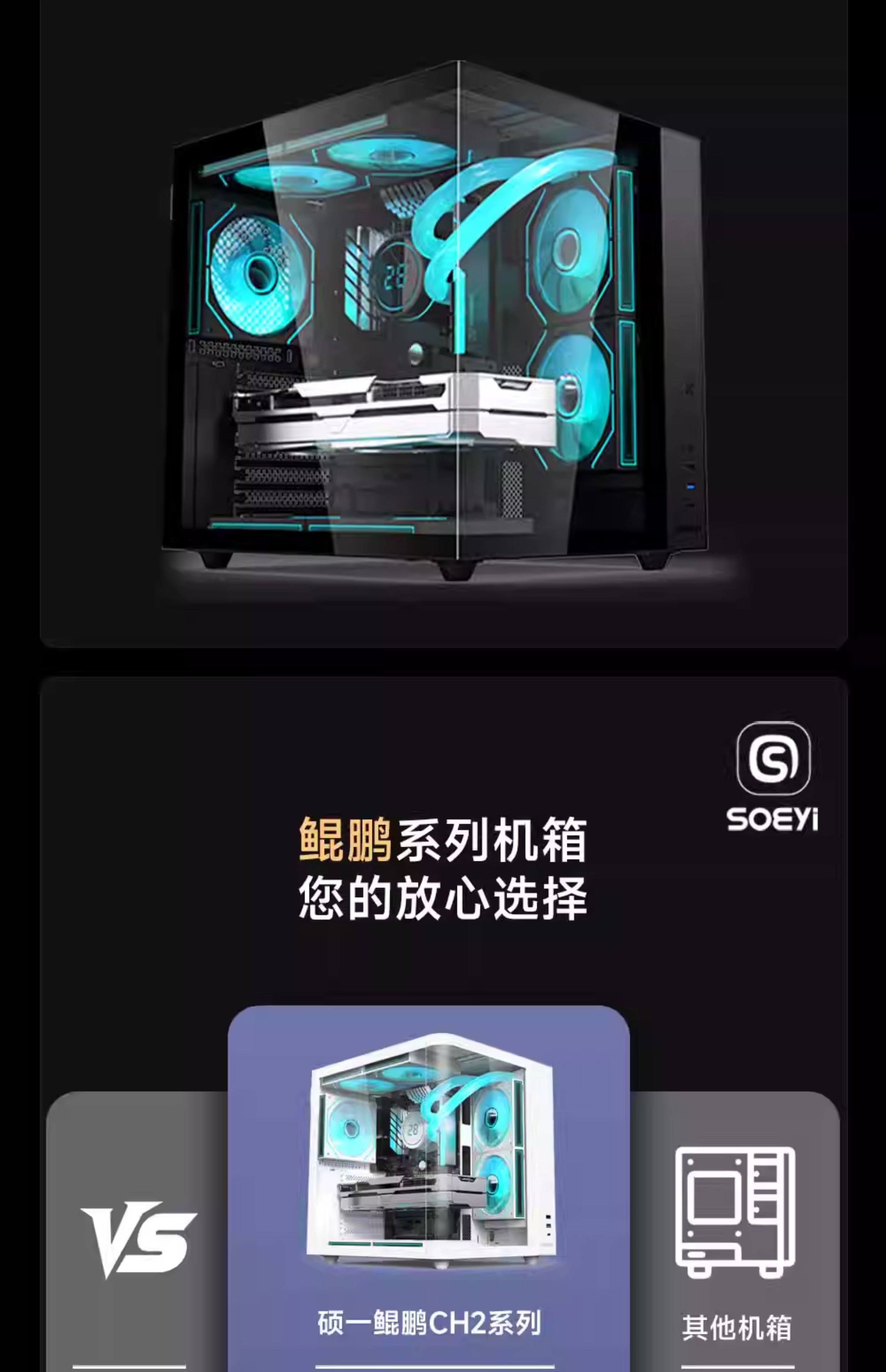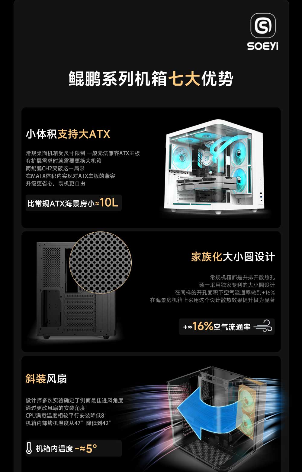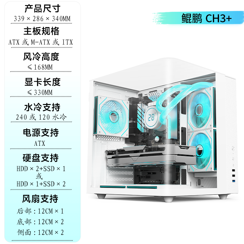 Shuoyi Kunpeng CH2+ 데스크탑 컴퓨터 ATX 메인 케이스 흰색 측면 투명 바다 전망 룸 게임 240 수냉스토어 가기