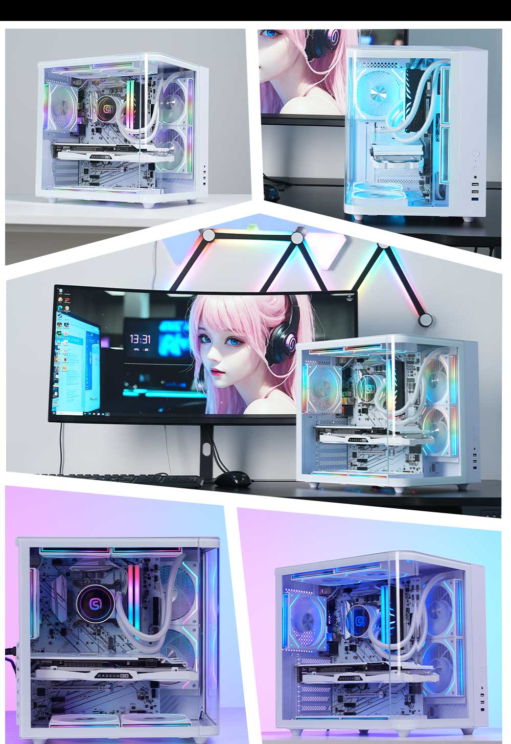 Shuoyi Kunpeng CH2+ 데스크탑 컴퓨터 ATX 메인 케이스 흰색 측면 투명 바다 전망 룸 게임 240 수냉