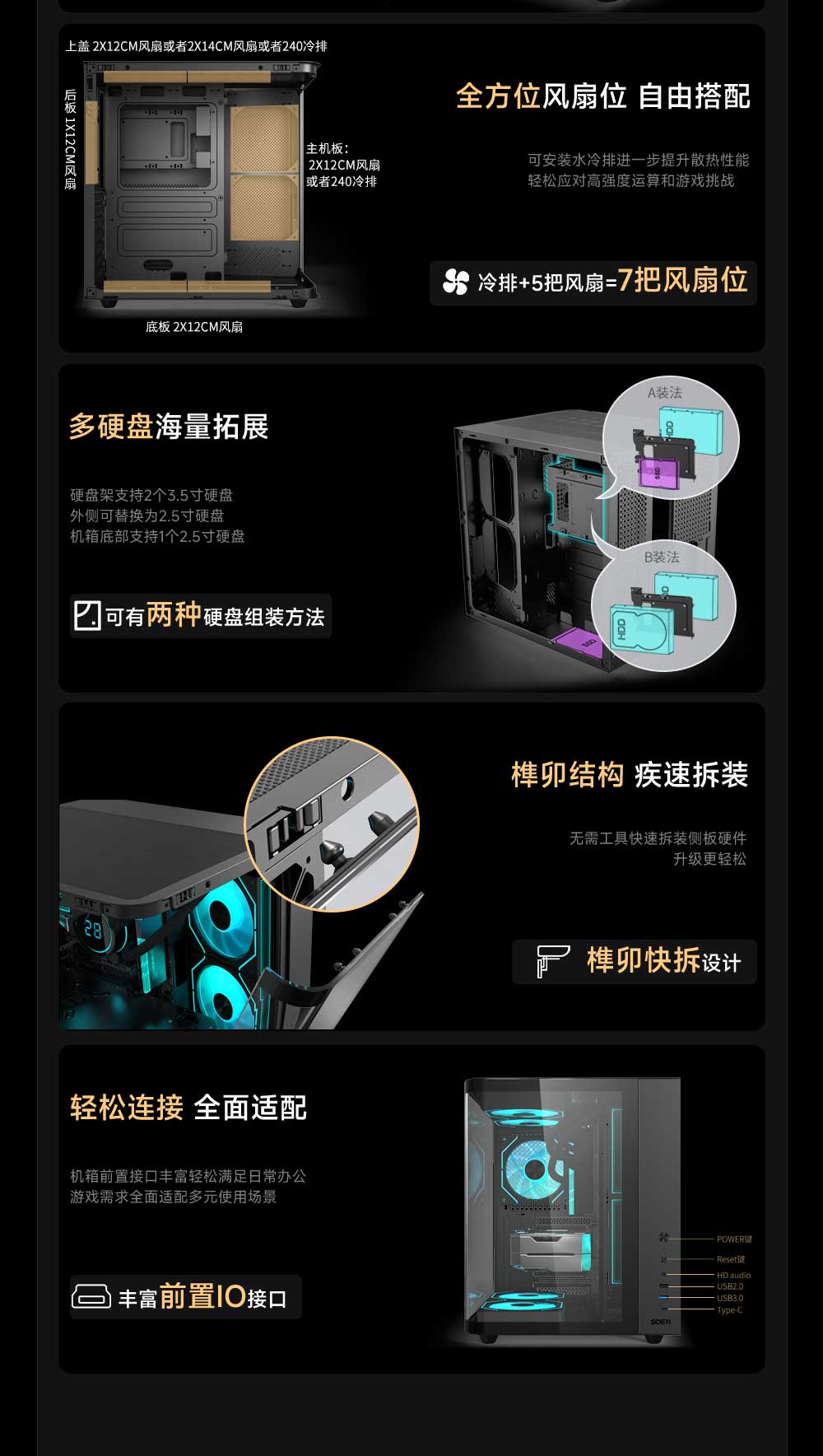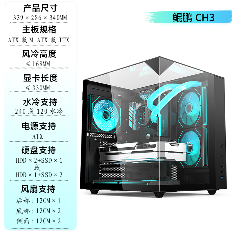 • Kunpeng CH3+ 검정색(ATX 통합 곡면 유리 및 3면 유리 지원)