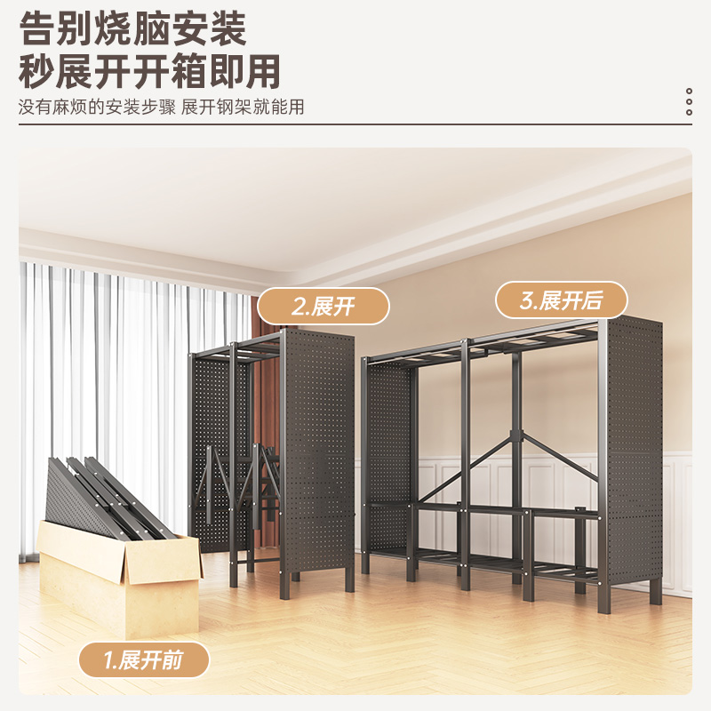 ♔ 홀이 있는 판넬 옷장, 침실용 가정용 일체형 무설치 간편 천 옷장, 두꺼운 견고한 임대용 옷장